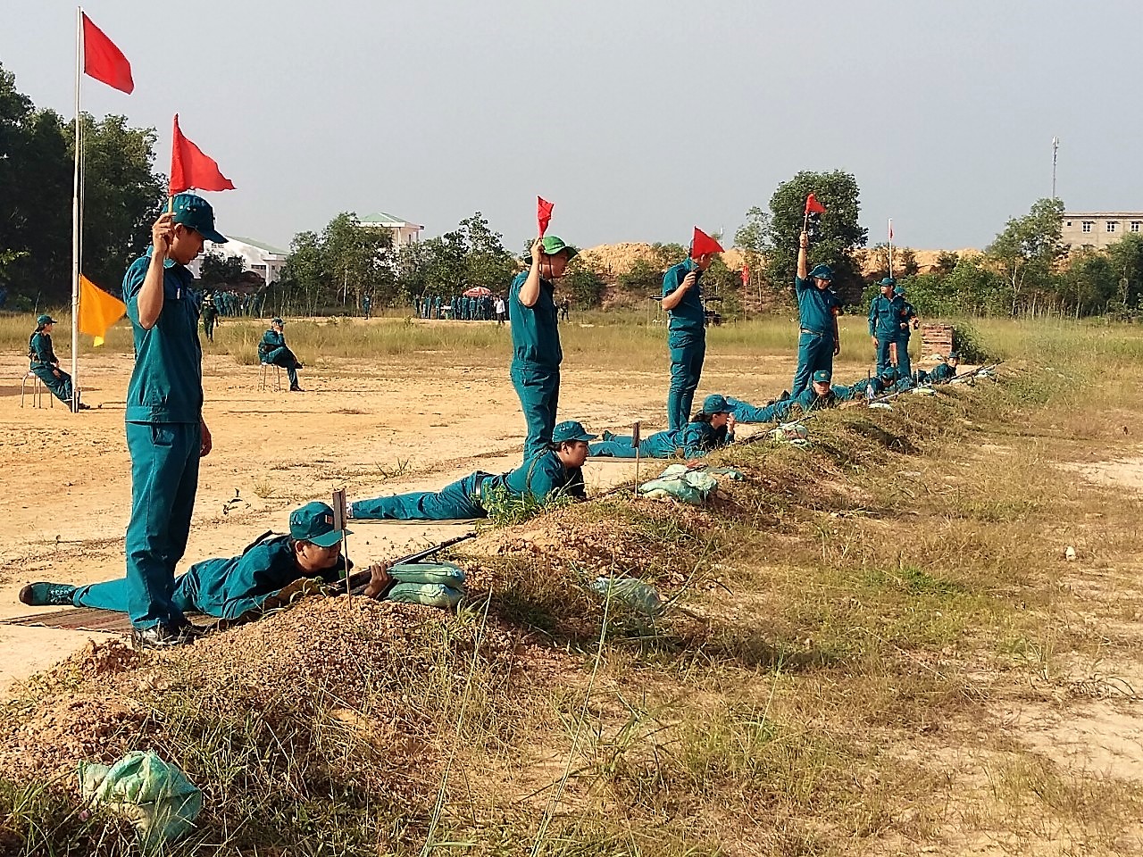 Đợt bắn đạn thật lần này có 610 chiến sĩ dân quân tự vệ, trong đó dân quân tự vệ năm thứ nhất kiểm tra bắn bài 1b súng K63, tư thế nằm bắn có bệ tỳ, cự ly 100m. Dân quân cơ động, dân quân thường trực, tự vệ các cơ quan, tổ chức kiểm tra bắn bài 1 súng K63, 3 tư thế nằm, quỳ, đứng bắn, cự ly 100m. Kết thúc đợt kiểm tra bắn đạn thật, 100% đạt yêu cầu, trong đó có 14 đồng chí đạt giỏi.