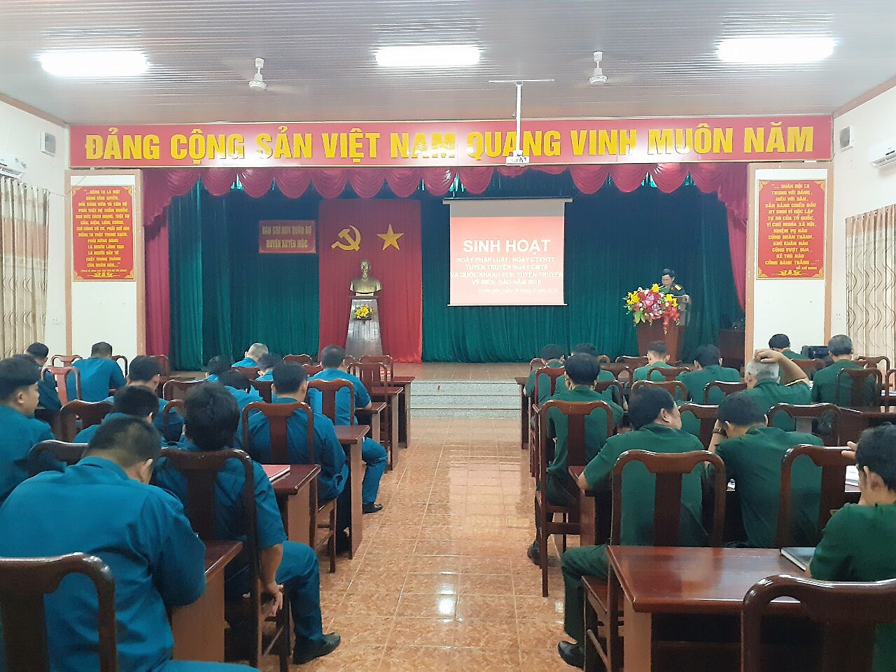 Cán bộ, chiến sĩ được quán triệt, phổ biến một số quy định về soạn thảo văn bản theo quy định mới, các chỉ thị, quy định của Bộ CHQS tỉnh và Ban CHQS huyện nhiệm vụ SSCĐ trong bảo vệ cao điểm Cách mạng Tháng Tám và Quốc khánh 2 tháng 9, một số định hướng về tình hình biển Đông trong thời gian qua, triển khai một số nhiệm vụ về nắm bắt thông tin trên mạng xã hội cho Ban CHQS các xã, thị trấn và lực lượng dân quân thường trự …