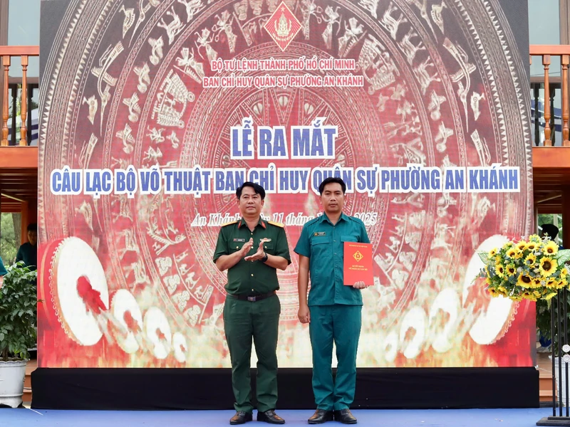 (QK7 Online) – Chiều 12/11, Ban Chỉ huy Quân sự (CHQS) phường An Khánh (Bộ Tư lệnh Thành phố Hồ Chí Minh) tổ chức Lễ ra mắt Câu lạc bộ (CLB) Võ thuật.