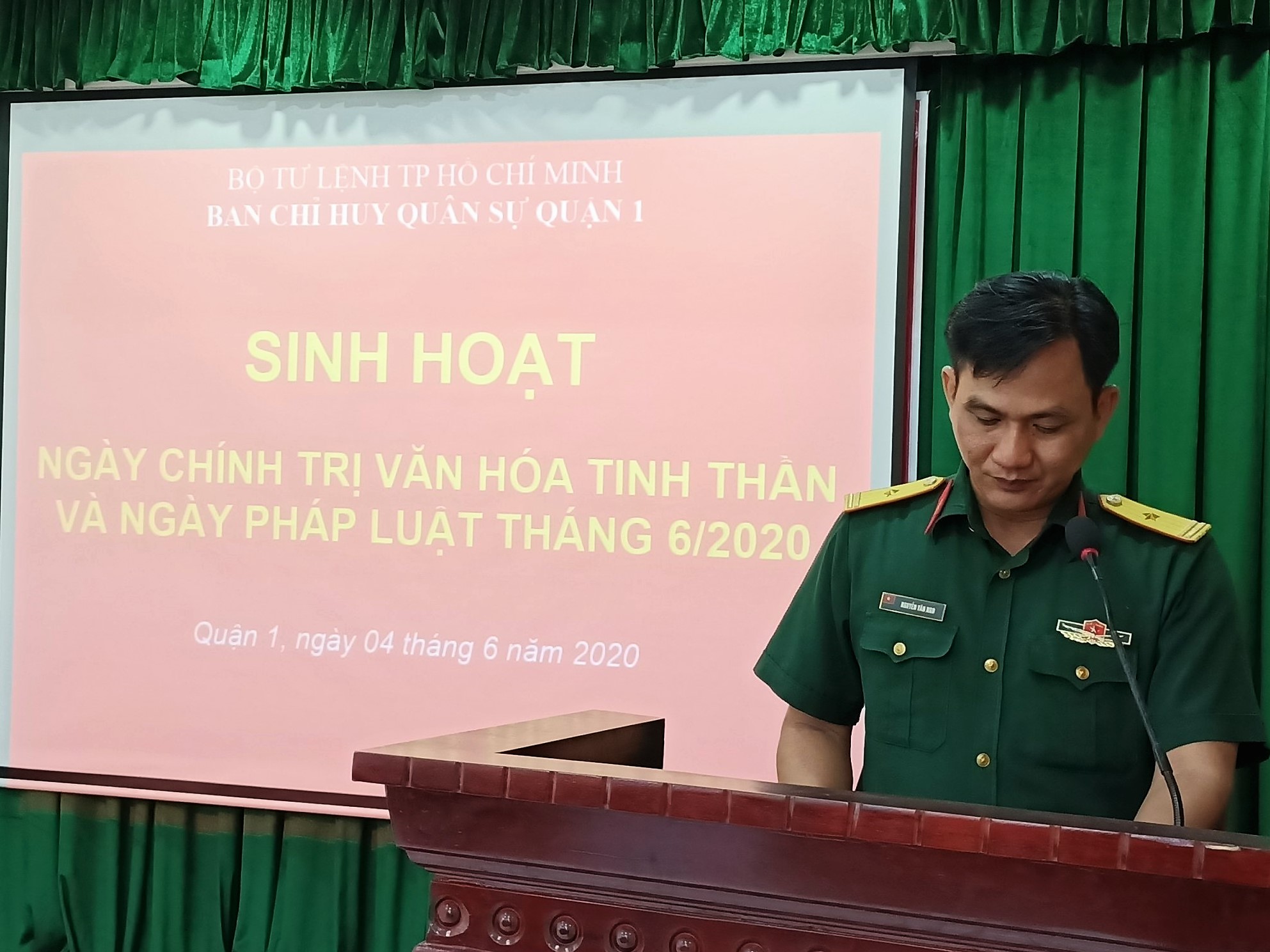 (QK7 Online) - Ngày 4/6, Ban Chỉ huy Quân sự Quận 1 tổ chức sinh hoạt Ngày chính trị - văn hóa tinh thần và Ngày pháp luật tháng 6/2020.