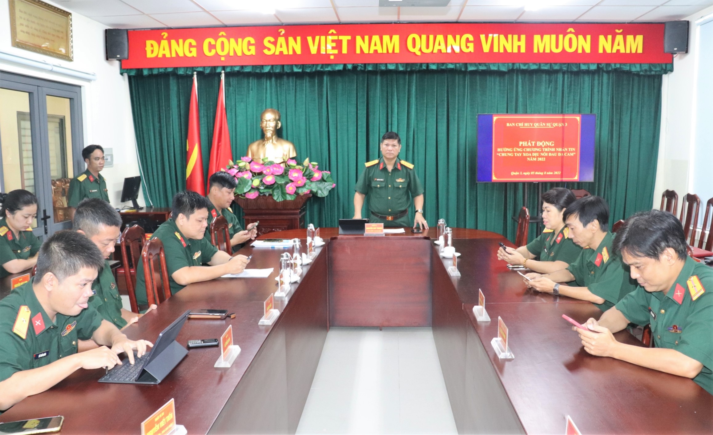 Thượng tá Nguyễn Duy Trung, Chỉ huy trưởng Ban CHQS quận phát động chương trình nhắn tin từ thiện “Chung tay xoa dịu nỗi đau da cam” năm 2022.