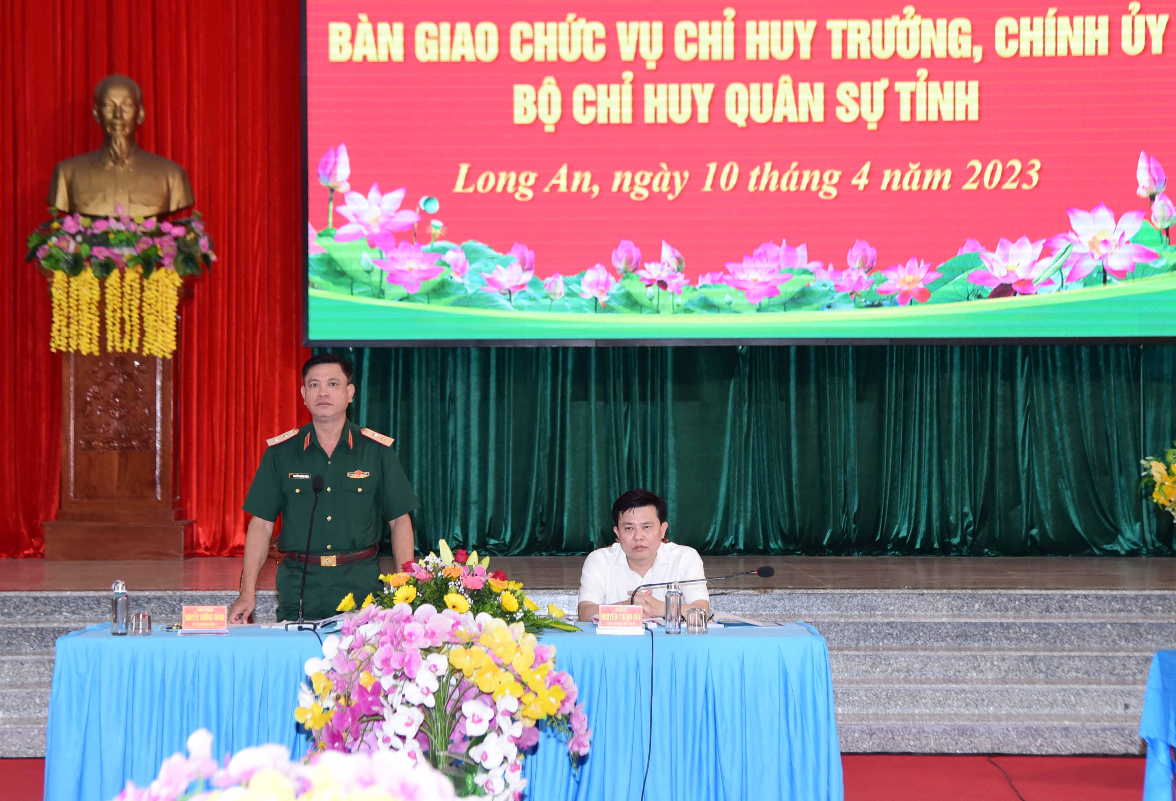 Phát biểu tại hội nghị, Trung tướng Nguyễn Trường Thắng, Tư lệnh Quân khu yêu cầu tập thể Bộ Chỉ huy quân sự tỉnh Long An cùng các đồng chí được nhận chức vụ mới, tiếp tục phát huy tinh thần đoàn kết, trí tuệ, năng lực, phẩm chất đạo đức, nhanh chóng tiếp nhận đầy đủ nhiệm vụ theo chức trách bảo đảm cho công tác lãnh đạo chỉ đạo, điều hành, thực hiện nhiệm vụ của đơn vị được liên tục, hiệu quả.