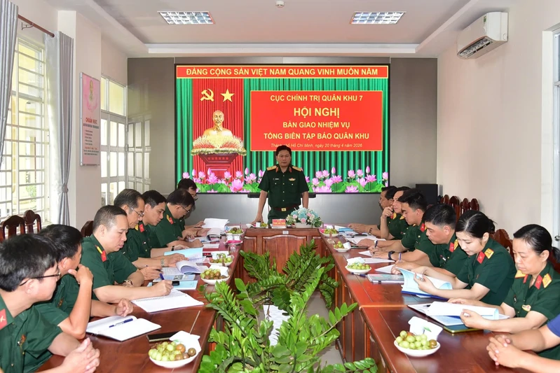 (QK7 Online) - Sáng ngày 20/4, Cục Chính trị Quân khu 7 tổ chức hội nghị bàn giao nhiệm vụ Tổng Biên tập Báo Quân khu. Thiếu tướng Phạm Anh Tuấn, Ủy viên Ban Thường vụ Đảng ủy, Chủ nhiệm Chính trị Quân khu chủ trì hội nghị. Dự hội nghị có Thủ trưởng các cơ quan thuộc Cục Chính trị và toàn thể cán bộ, phóng viên Báo Quân khu 7.