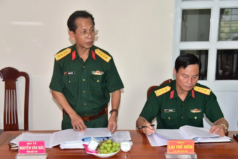 Đại tá Nguyễn Văn Bắc, nguyên Tổng Biên tập Báo Quân khu thông qua biên bản bàn giao.