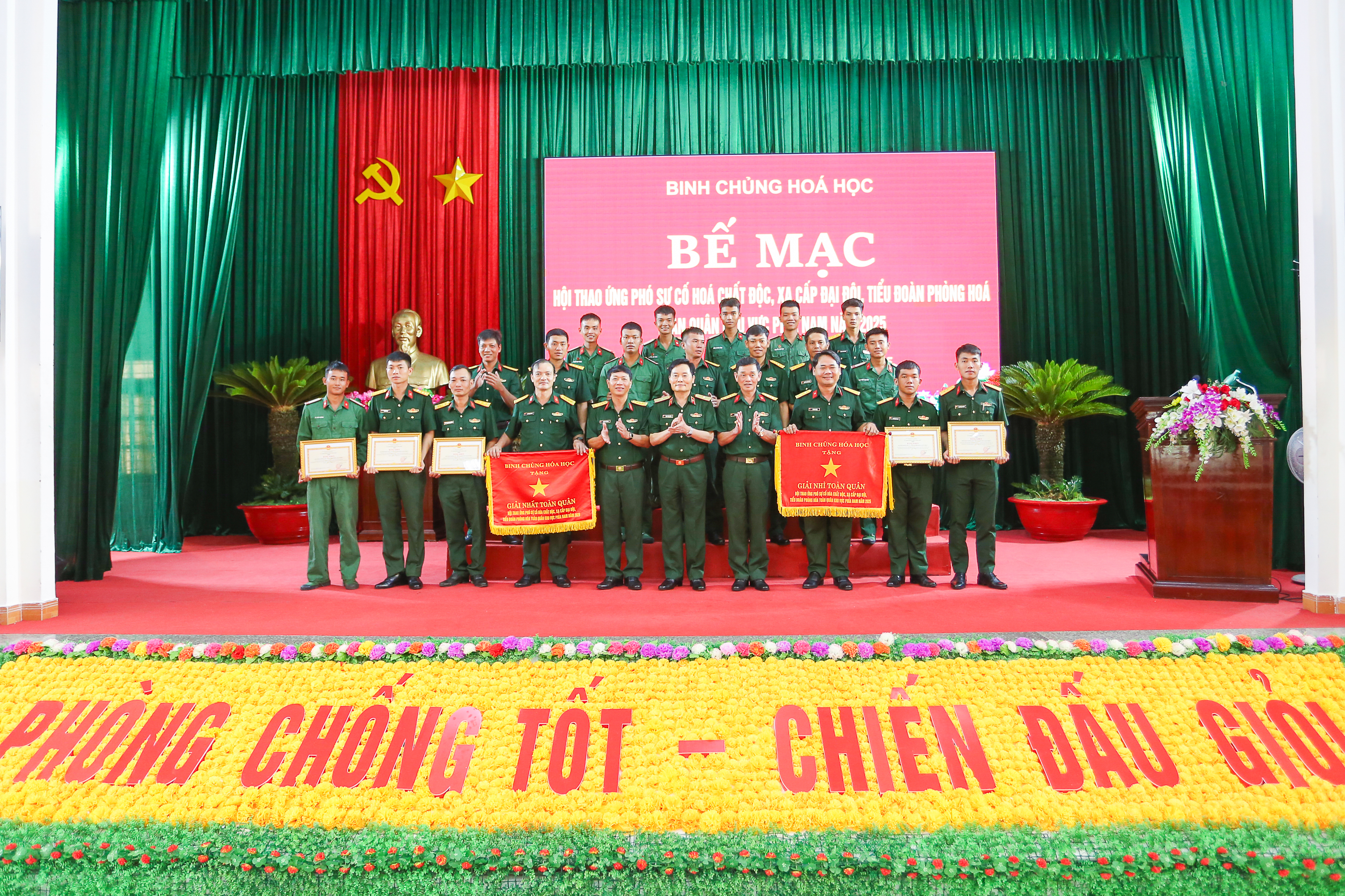 Tại buổi bế mạc, thủ trưởng Binh chủng Hóa học đã trao cờ thưởng tặng các đội có thành tích xuất sắc; trao bằng khen tặng các tập thể, cá nhân đạt thành tích tiêu biểu trong các nội dung thi đấu và phục vụ hội thao.