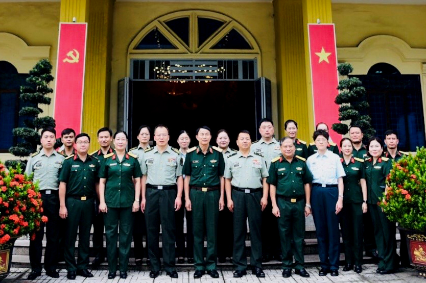 Đoàn Viện khoa học Quân sự, Quân giải phóng nhân dân Trung Quốc tham quan Bảo tàng LLVT miền Đông Nam bộ. Ảnh: CTV