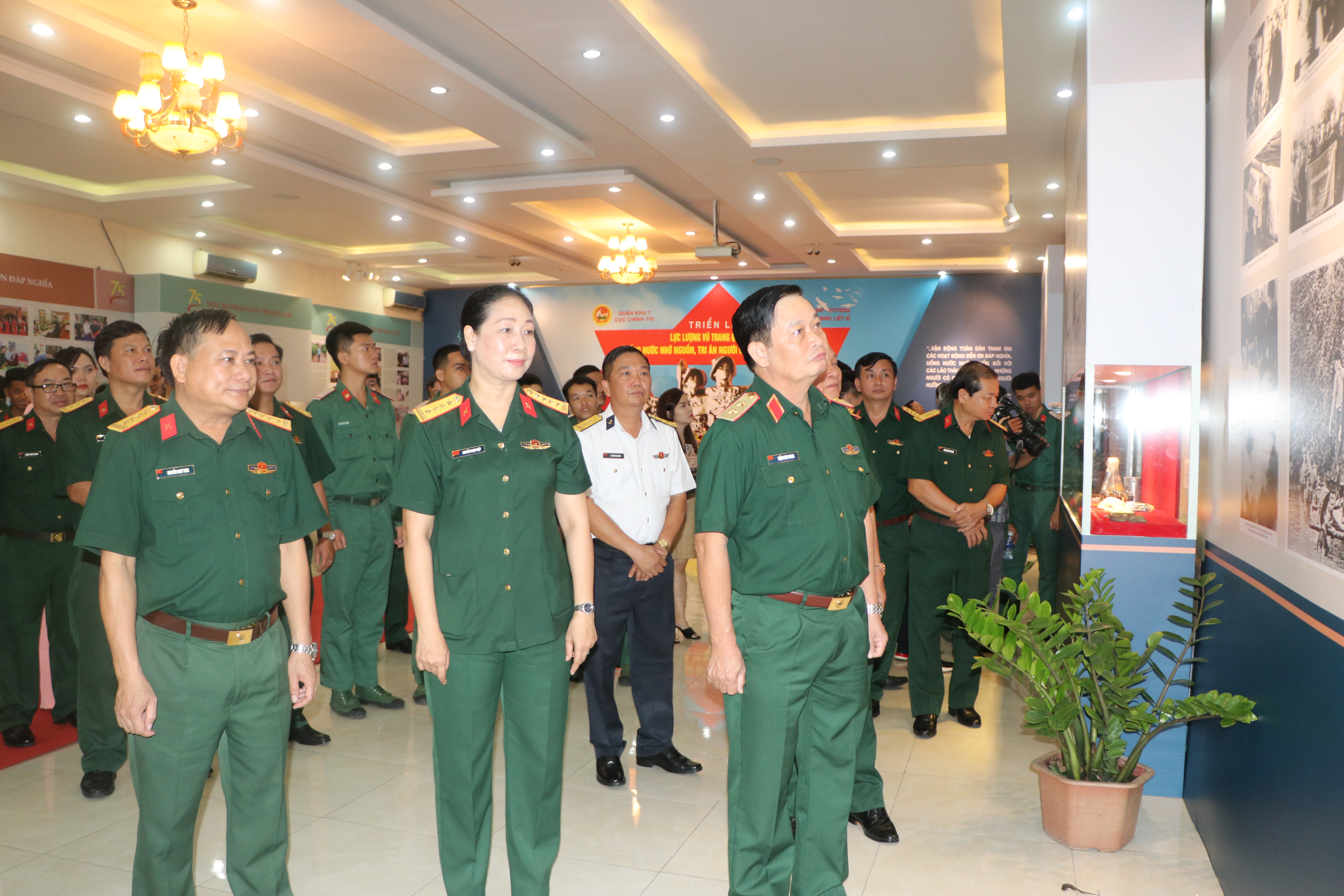Trung tướng Trần Hoài Trung, Bí thư Đảng ủy, Chính ủy Quân khu và các đại biểu tham quan triển lãm tại Bảo tàng Quân khu. Ảnh: Lê Hoan