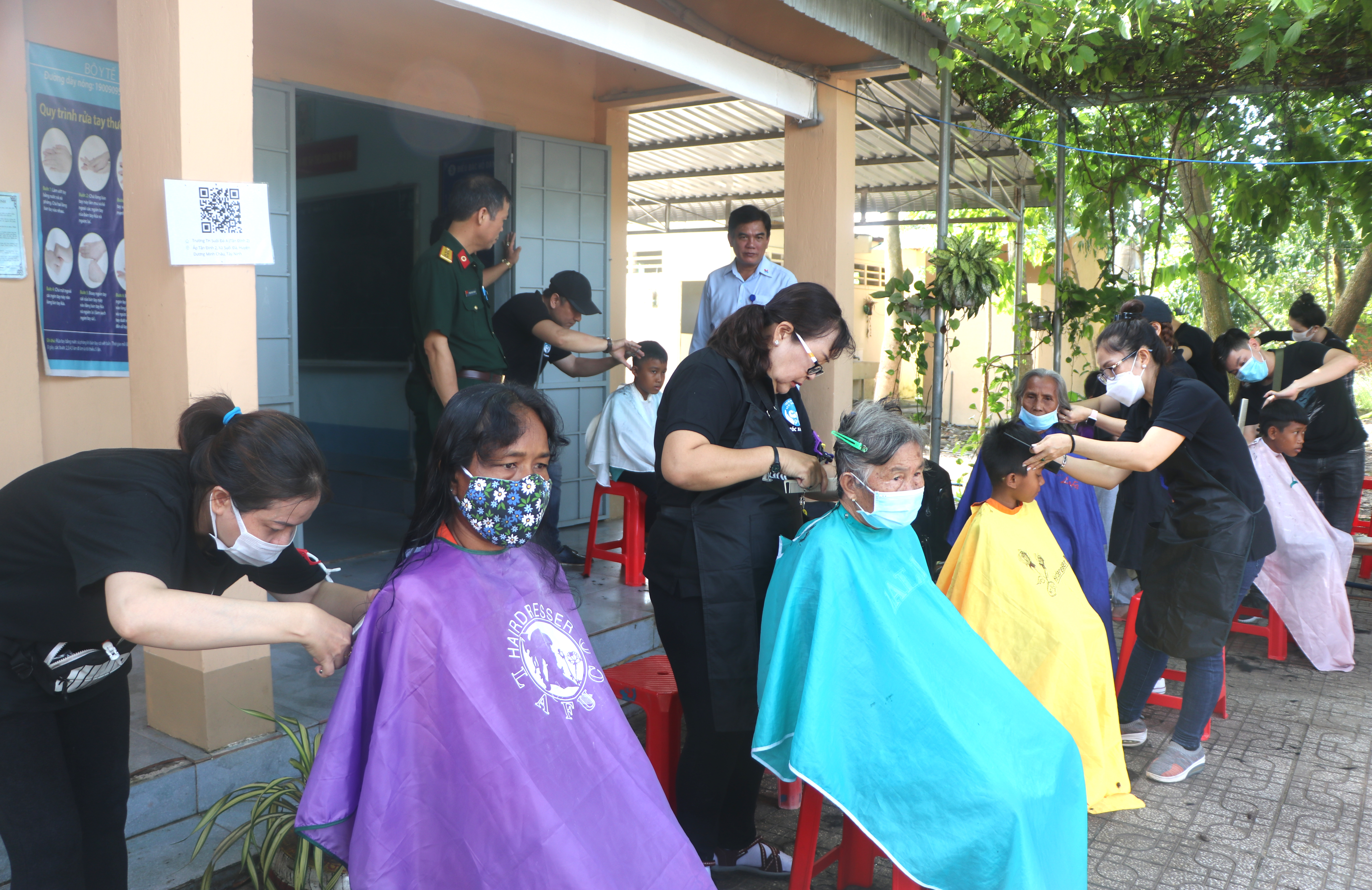 Nhóm thiện nguyện Tóc Xanh cắt tóc miễn phí cho trên 200 người dân.