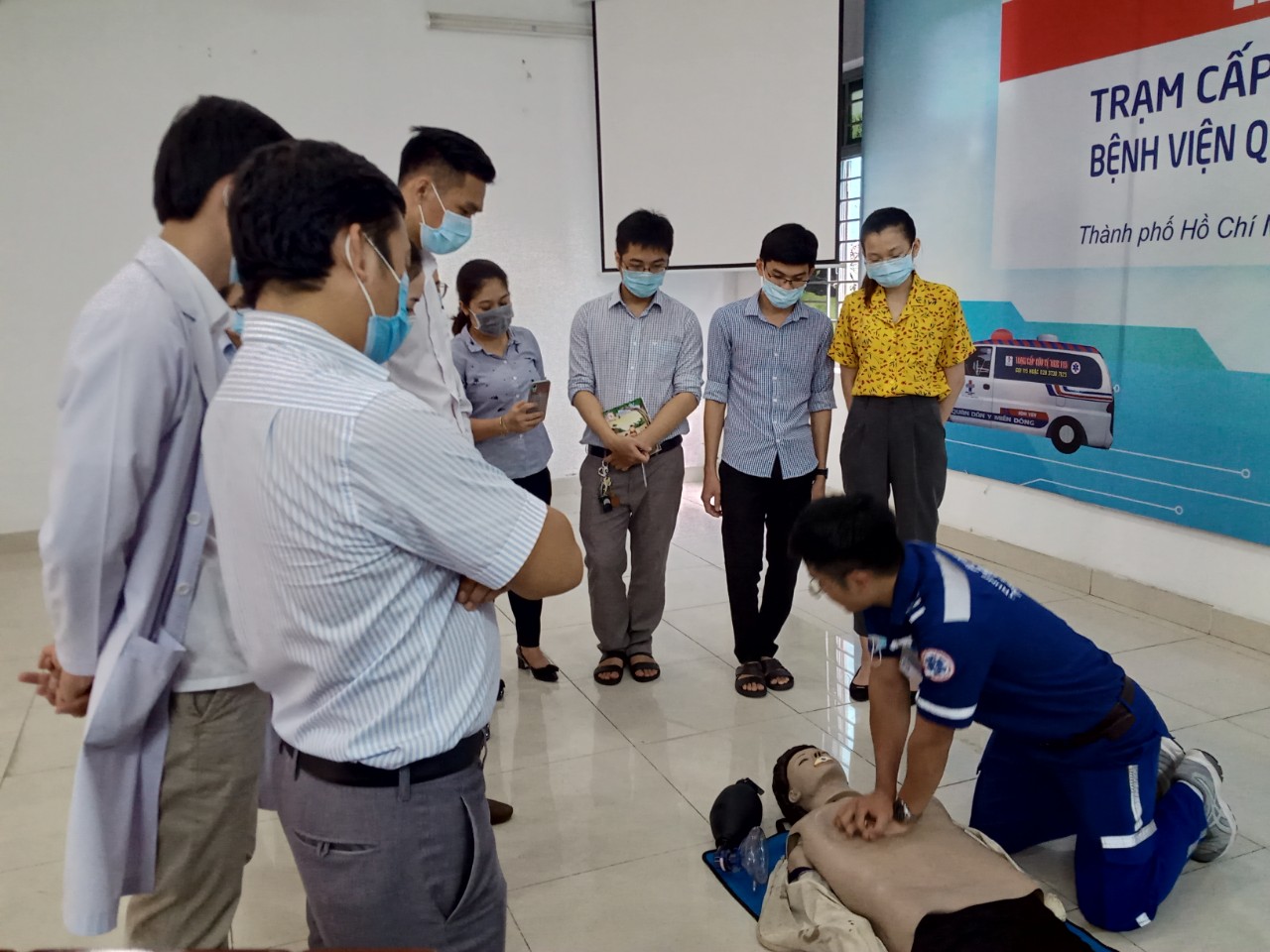 Sau quá trình tập huấn, các y bác sĩ, đội viên đội cấp cứu 115 của bệnh viện đã có thể thực hiện nhanh chóng, thuần thục, chính xác các thao tác sơ cấp cứu ngoại viện nhờ được các chuyên gia đến từ Trung tâm cấp cứu 115 TP.HCM hướng dẫn thực hành rất nhiều tình huống giả định trên mô hình.