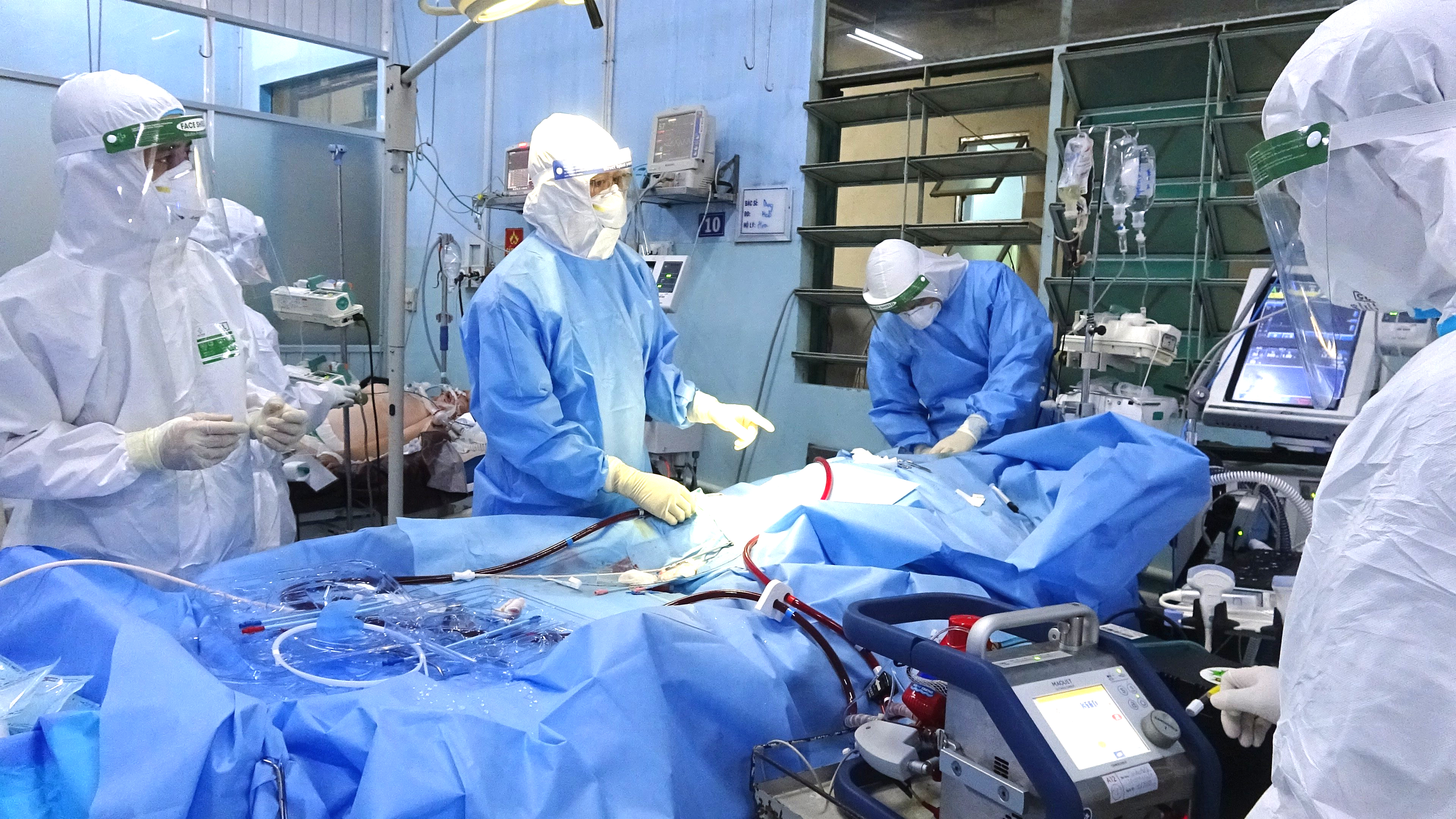 Bác sĩ tiến hành đặt ECMO cứu sản phụ mắc Covid-19. Ảnh: Trần Chính