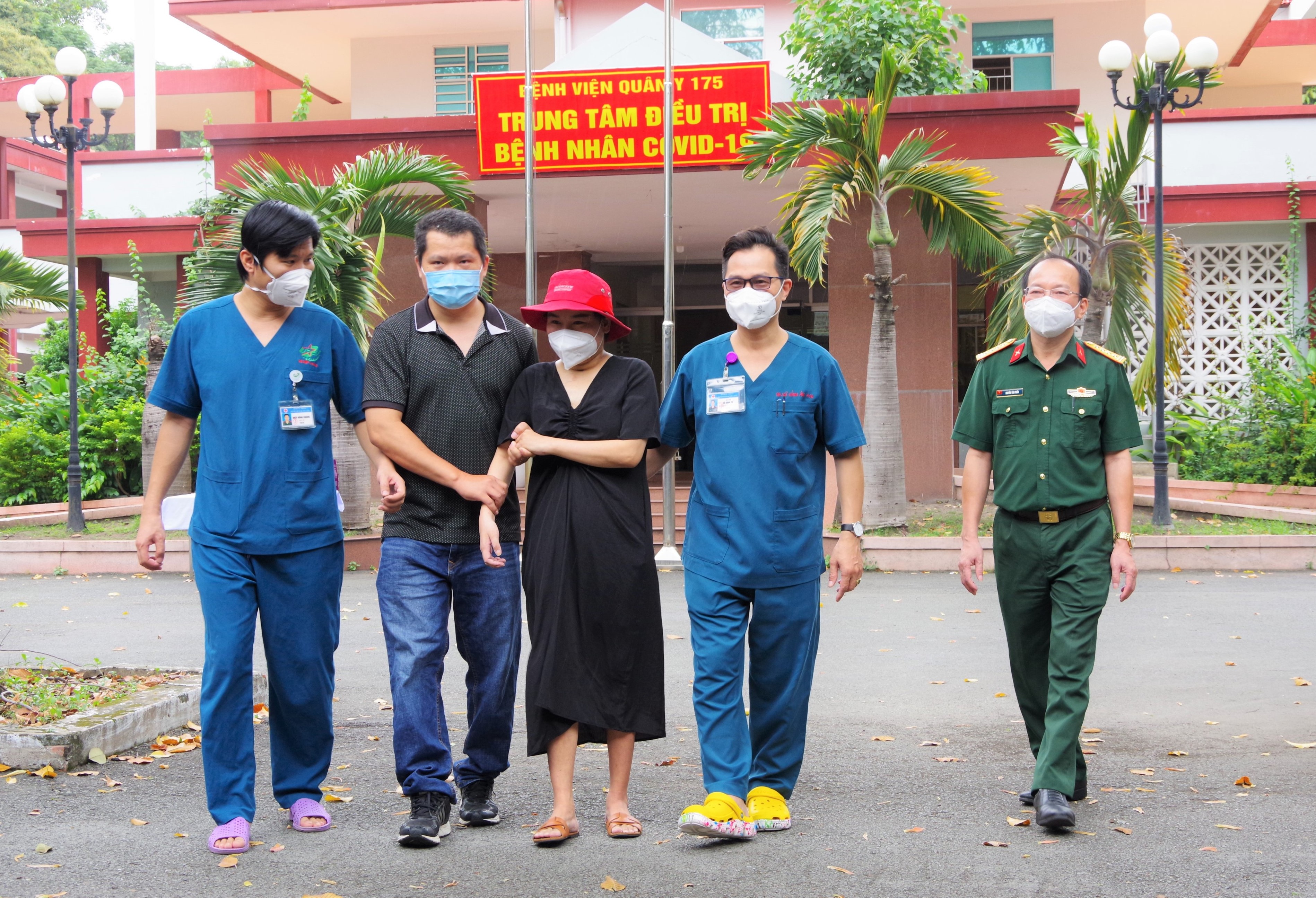 Nữ bệnh nhân L.T.T.H được xuất viện sau khi điều trị khỏi bệnh Covid-19 tại Bệnh viện Quân y 175. Ảnh: Văn Chính