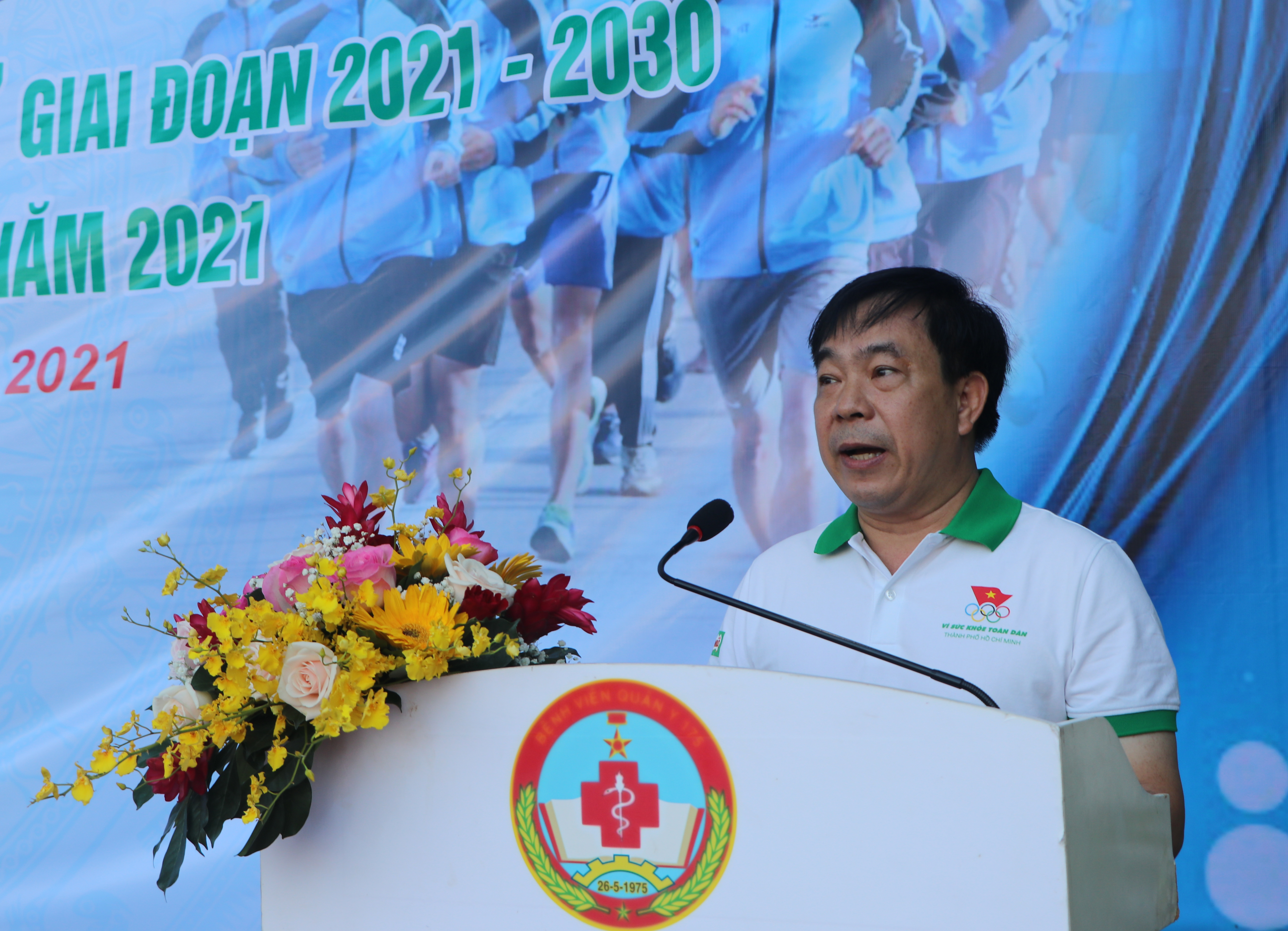 Đại tá Nguyễn Việt Cường, Phó Giám đốc Bệnh viện Quân y 175 phát động Cuộc vận động “Toàn dân rèn luyện thân thể theo gương Bác Hồ vĩ đại”.