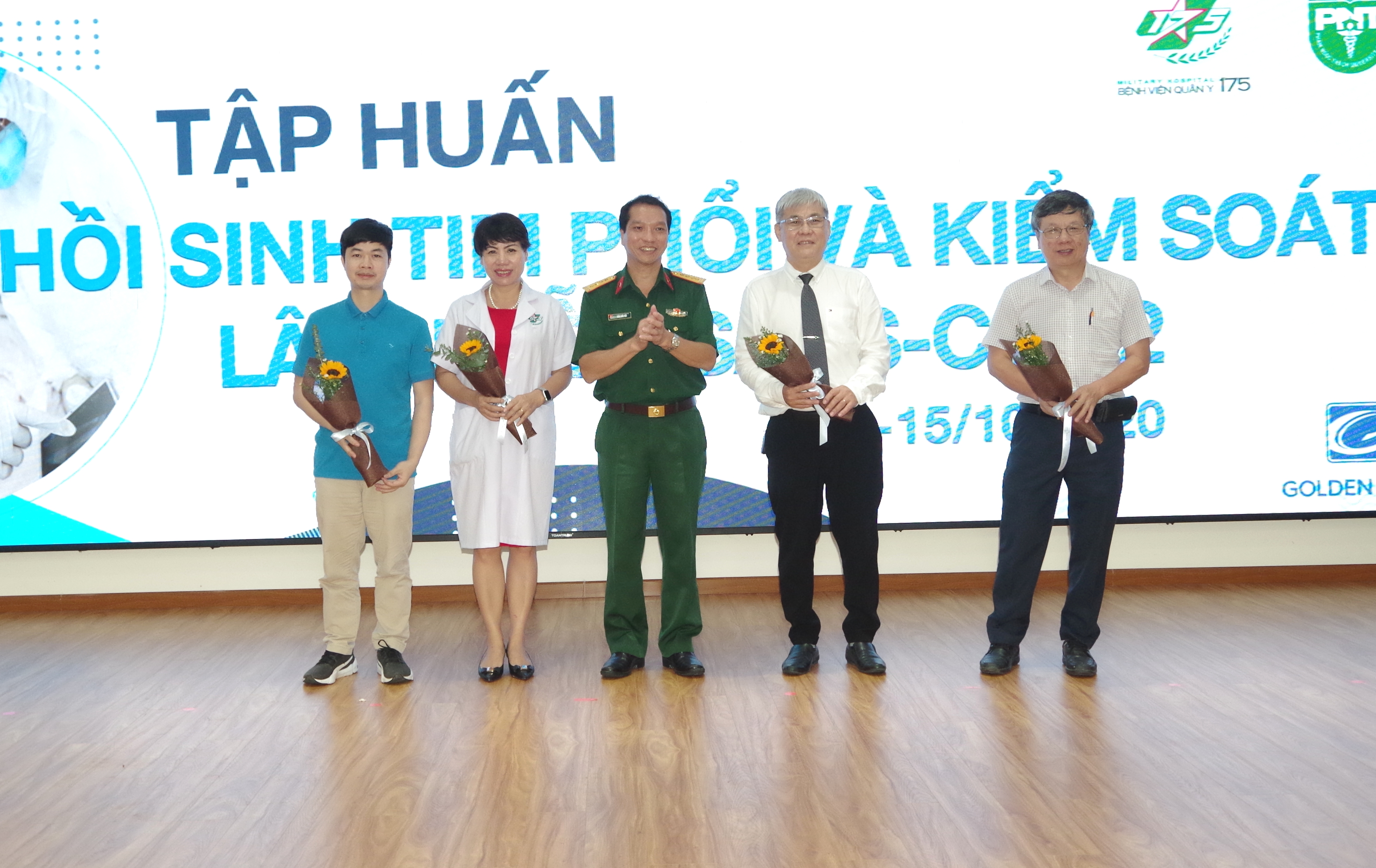 Đại tá Trần Quốc Việt, Phó Giám đốc Bệnh viện Quân y 175 tặng hoa các giảng viên.