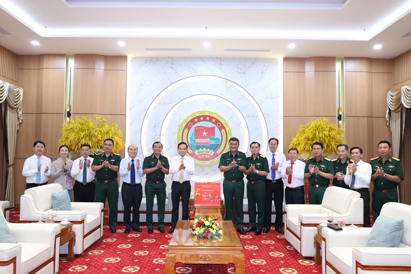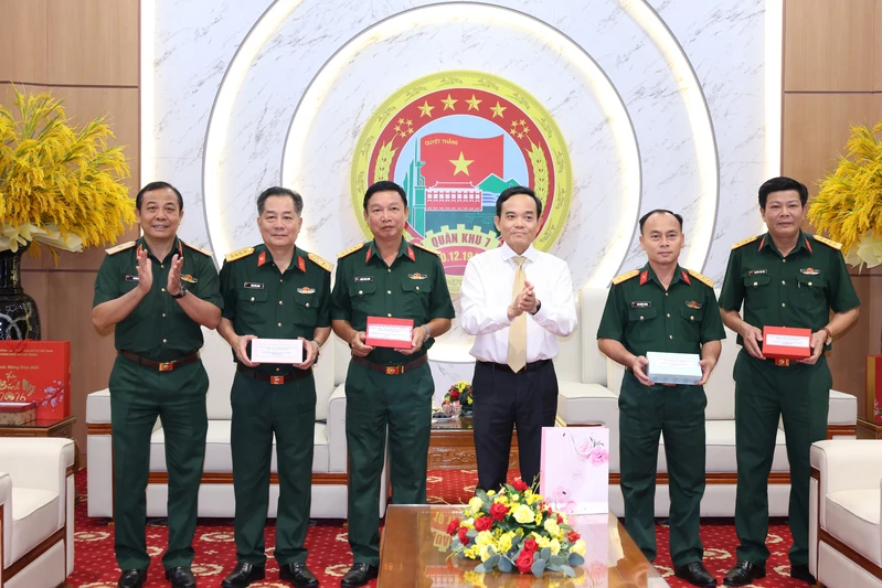 Đồng chí Trần Lưu Quang, Ủy viên Bộ Chính trị, Bí thư Thành ủy TP. Hồ Chí Minh cùng đoàn công tác chúc Tết Đảng ủy, Bộ Tư lệnh Quân khu.