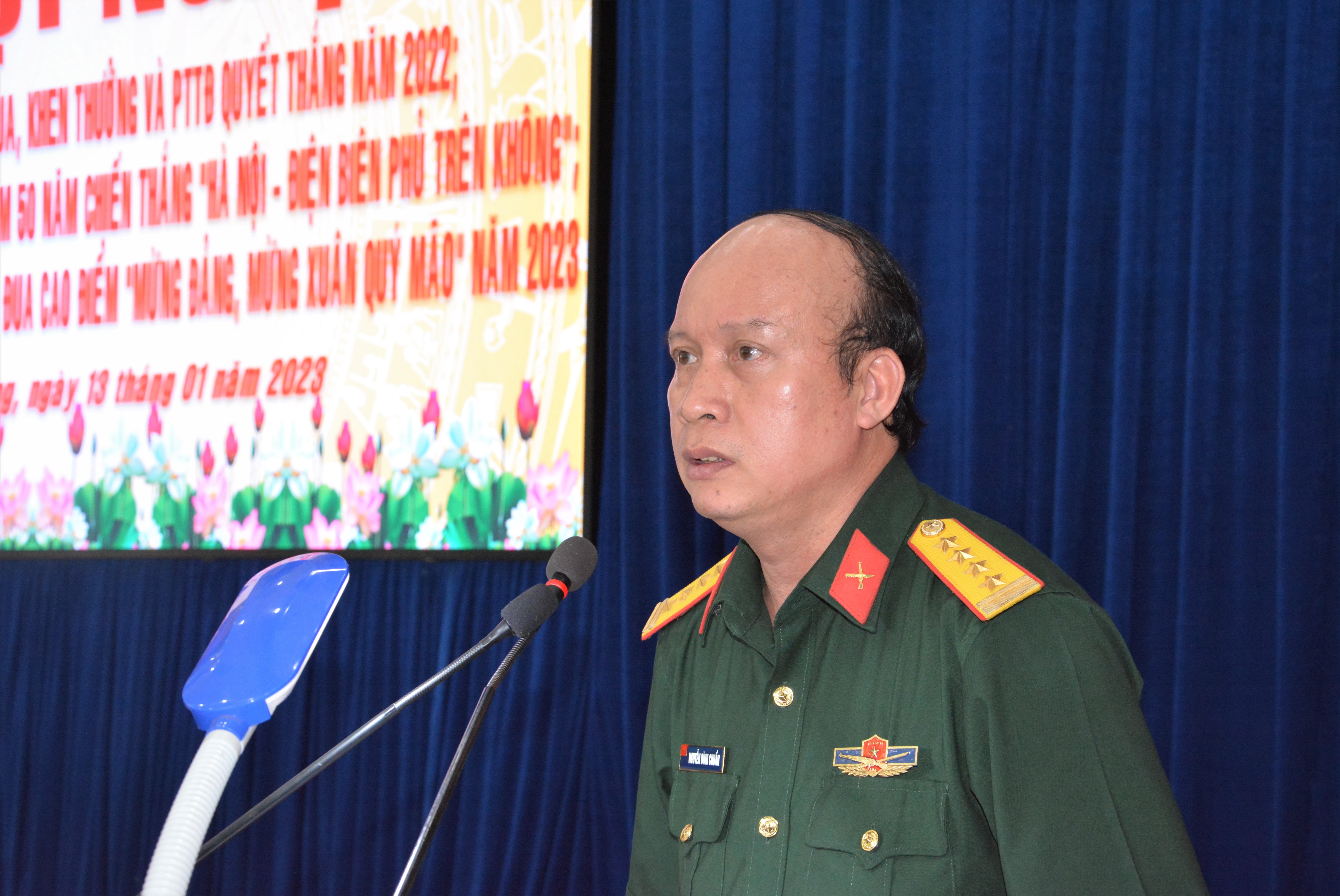 Đại tá Nguyễn Đình Chuẩn, Chính ủy Bộ CHQS tỉnh Bình Dương phát động thi đua cao điểm với chủ đề “Mừng Đảng, mừng xuân, ra quân quyết thắng”.