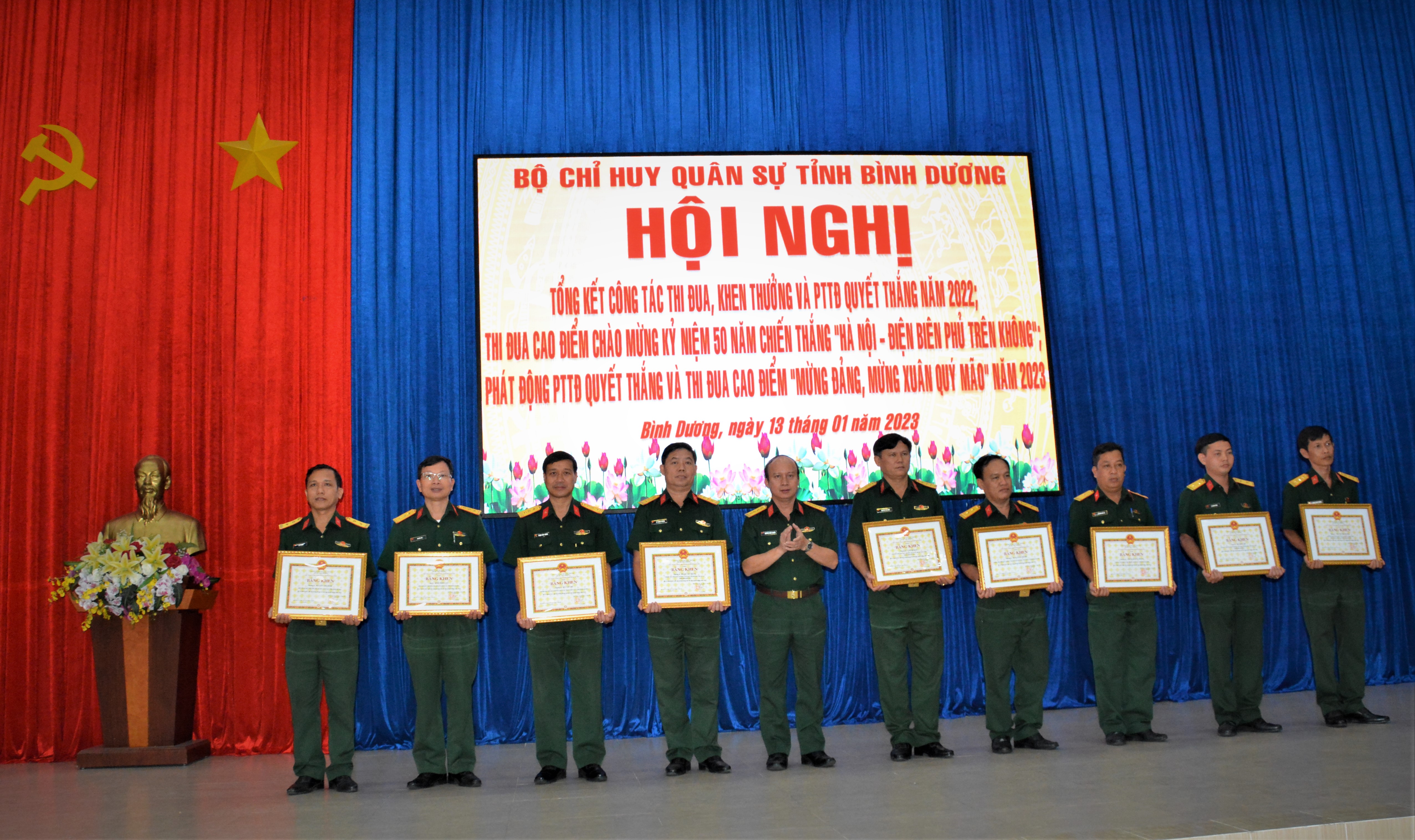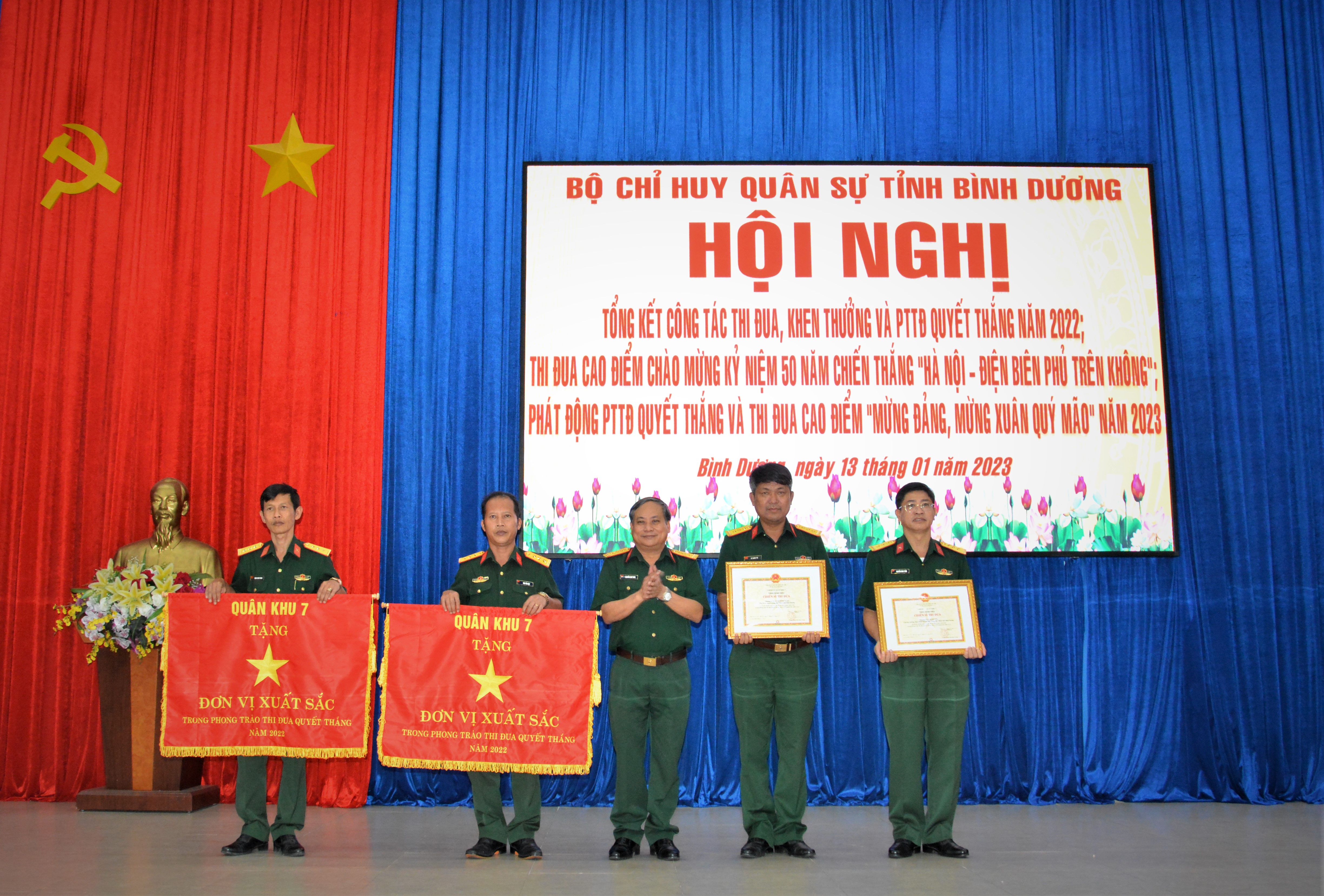 (QK7 Online) – Ngày 13-1, Bộ CHQS tỉnh Bình Dương tổng kết công tác thi đua, khen thưởng và phong trào thi đua quyết thắng năm 2022; phát động thi đua cao điểm mừng Đảng, mừng xuân Quý Mão 2023. Đại tá Nguyễn Như Trúc, Phó Chủ nhiệm Chính trị Quân khu dự chỉ đạo.