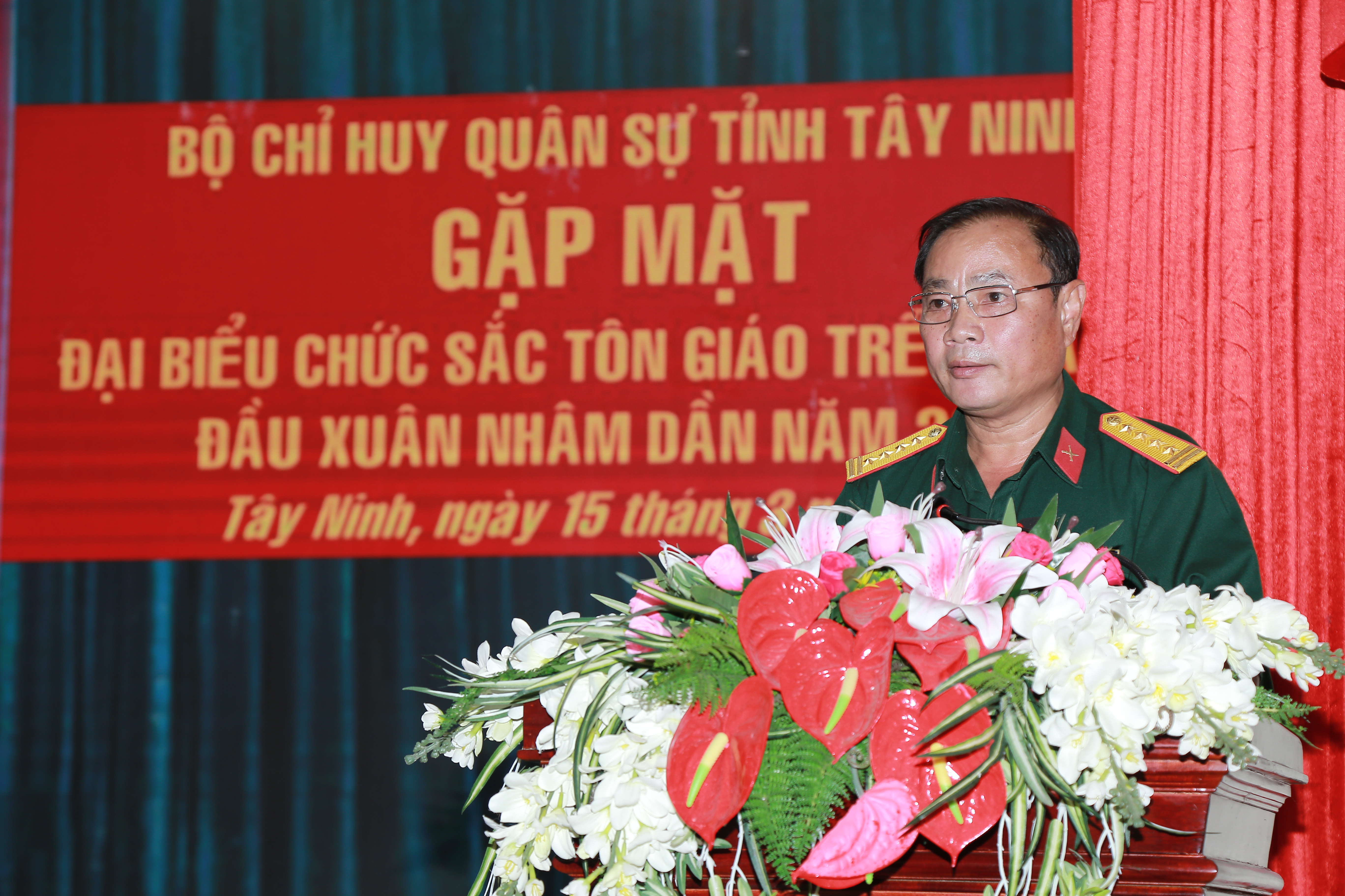 (QK7 Online) - Chiều 15/3, Bộ Chỉ huy Quân sự (CHQS) tỉnh Tây Ninh tổ chức gặp mặt đại biểu chức sắc tôn giáo trên địa bàn tỉnh đầu xuân Nhâm Dần 2022. Đến dự có Đại tá Nguyễn Công Anh, Phó Chủ nhiệm Chính trị Quân khu.