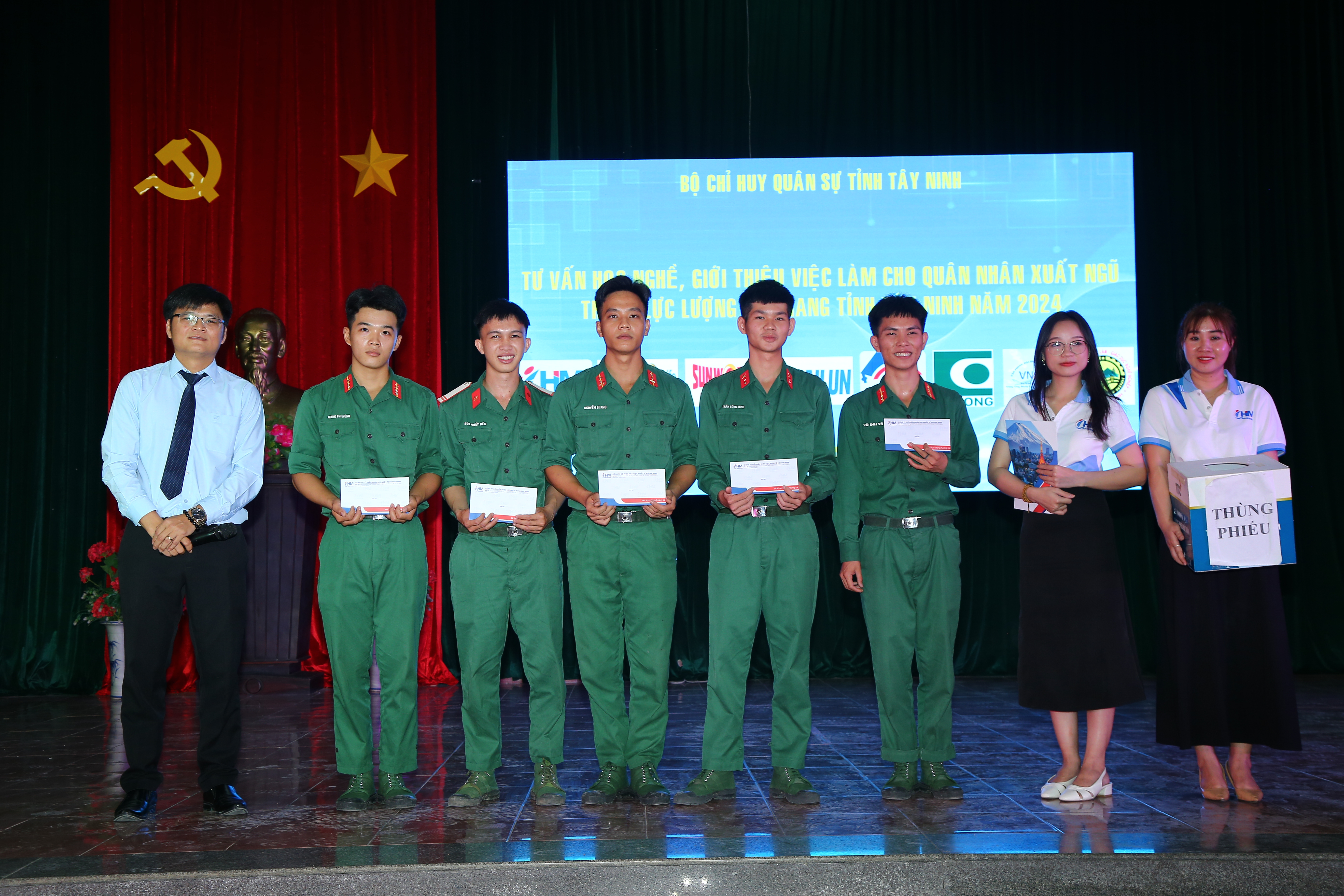 Hạ sĩ quan, binh sĩ xuất ngũ vui mừng phấn khởi nhận quà từ các doanh nghiệp, trường dạy nghề.