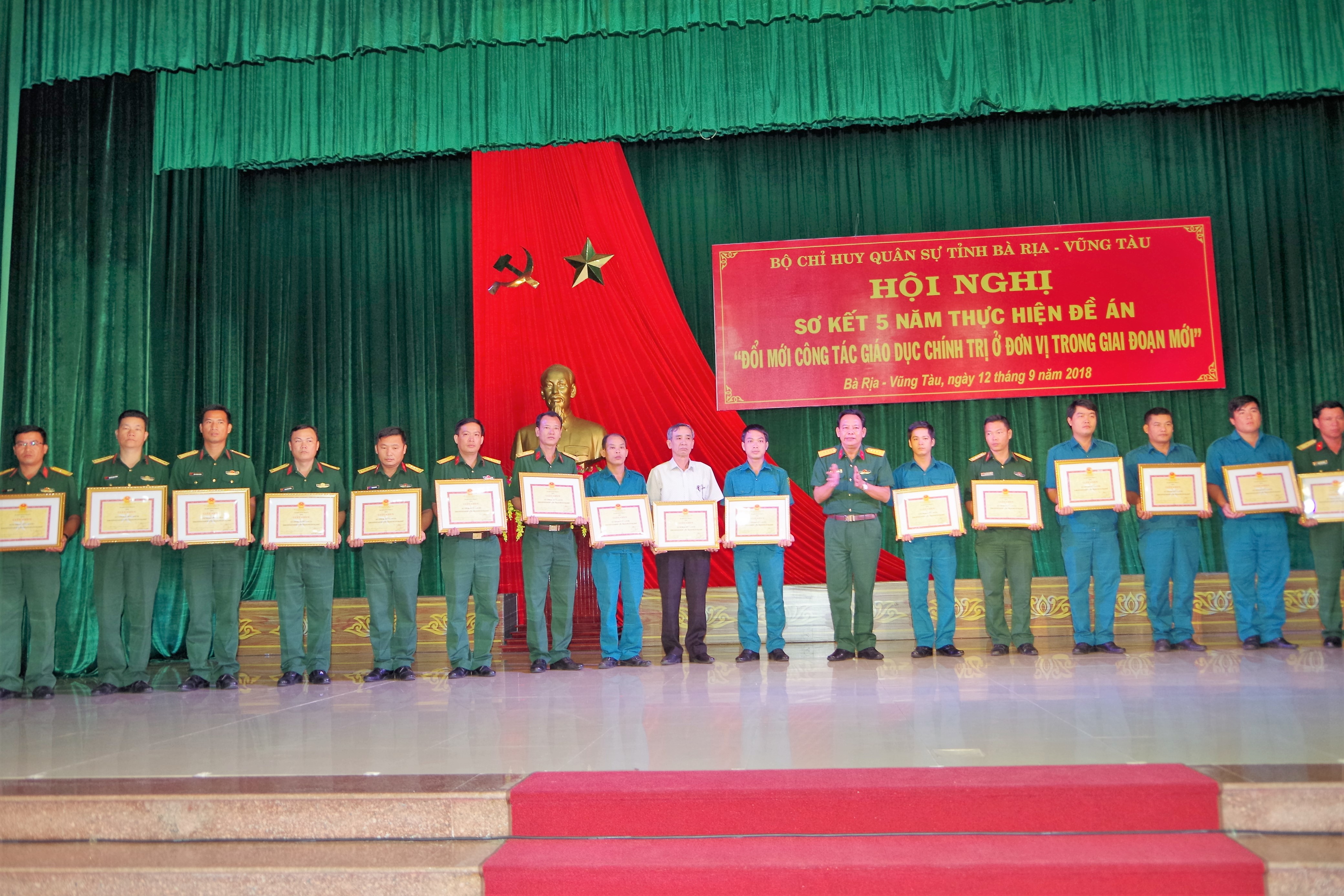Tại hội nghị, Bộ CHQS tỉnh đã khen thưởng cho 21 tập thể, 35 cá nhân đạt thành tích xuất sắc trong thực hiện Đề án “Đổi mới công tác giáo dục chính trị tại đơn vị trong giai đoạn mới”
