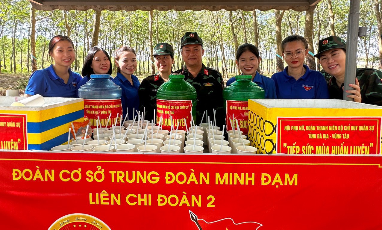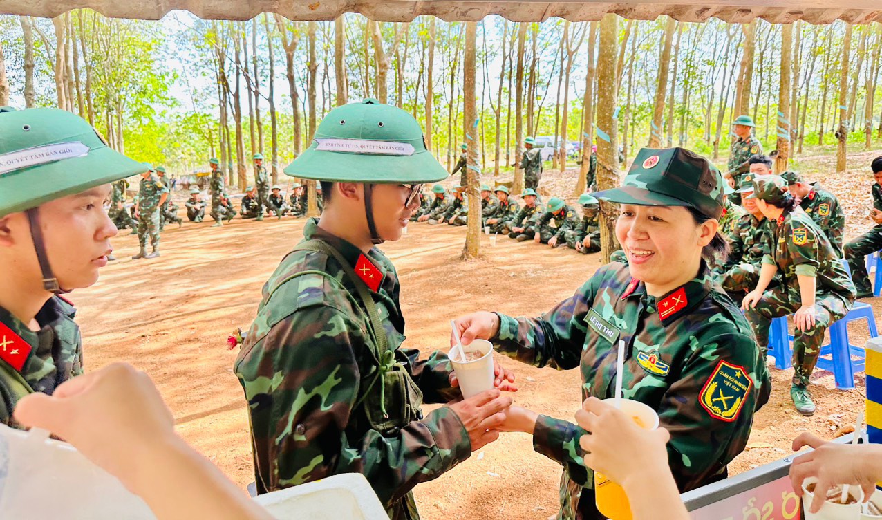Những ngày đầu tháng 4, trời nắng nóng, oi bức khó chịu, trên thao trường huấn luyện, những chiến sĩ thuộc Tiểu đoàn bộ binh 500, Trung đoàn Minh Đạm mồ hôi ướt đẫm lưng áo, làn da sạm nắng lấm tấm những giọt mồ hôi. Như cảm thông với các chiến sĩ, Hội Phụ nữ cơ sở phối hợp với Đoàn Thanh niên chuẩn bị các loại nước uống, như: Nước cam, trà tắc, cà phê, nước suối... bảo đảm tiêu chí thơm ngon, bổ dưỡng, hợp vệ sinh, giúp cán bộ, chiến sĩ vơi bớt mệt nhọc.