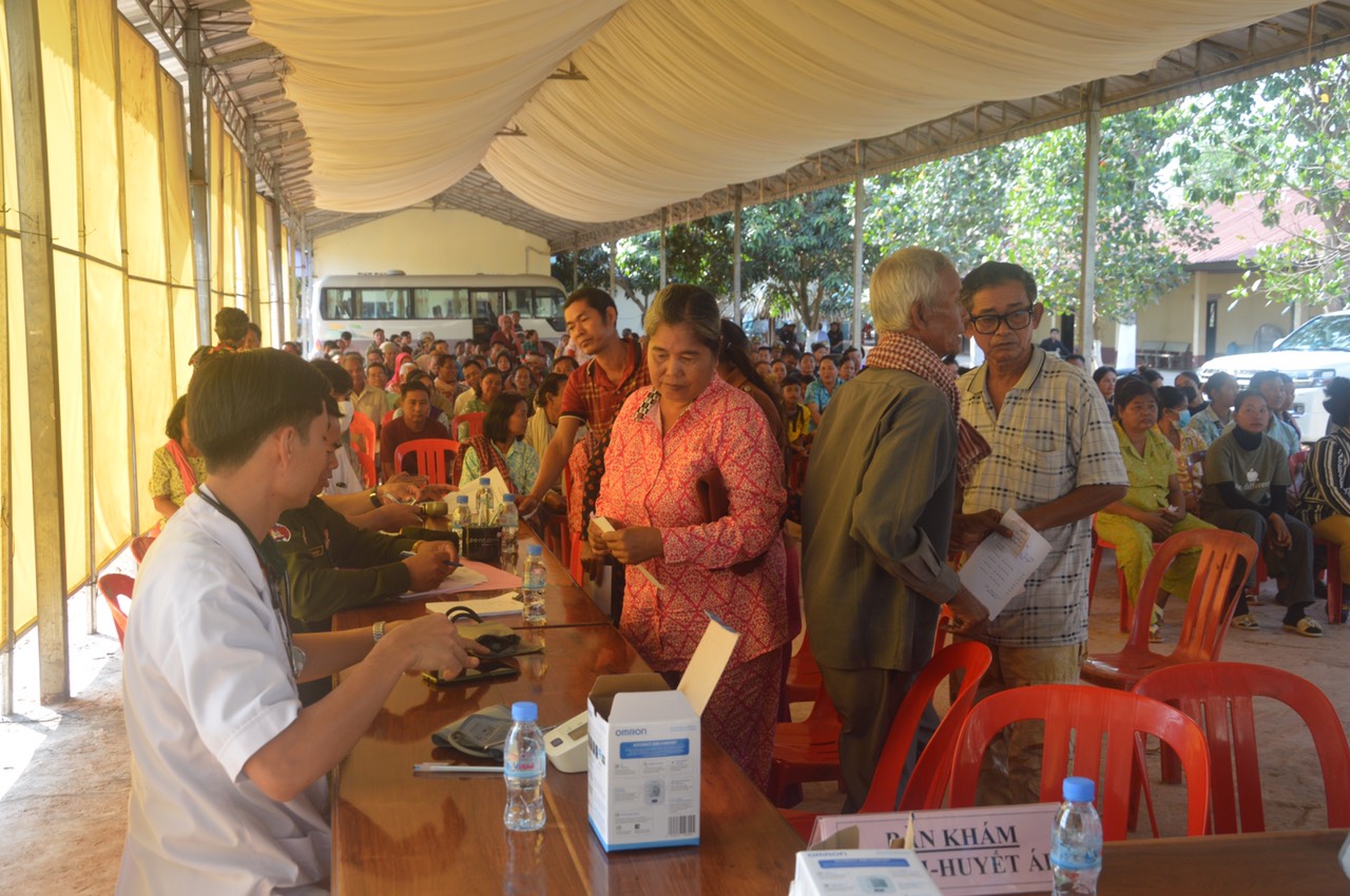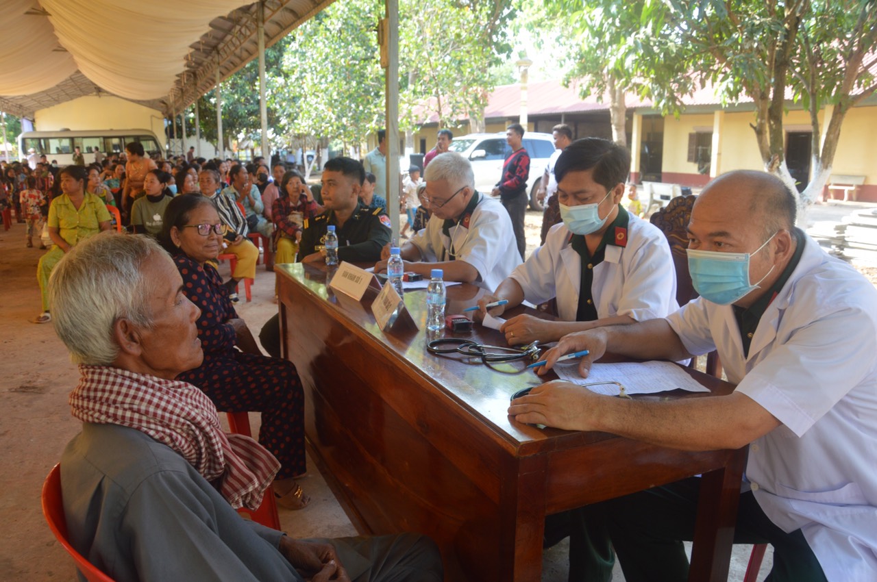 Trong 2 ngày, các y, bác sĩ quân y tiếp nhận, khám sàng lọc và tư vấn, chăm sóc sức khỏe hơn 500 lượt người dân và cán bộ, chiến sĩ Tiểu khu Quân sự tỉnh Kratie về các loại bệnh thường gặp như: Răng - hàm - mặt, tai - mũi - họng, da liễu, tim mạch, xương khớp, tiêu hóa… Đoàn cũng phối hợp với địa phương cử một tổ quân y trực tiếp xuống các phum, sóc thăm, khám, cấp thuốc cho hàng chục trường hợp người già ốm đau, đi lại khó khăn.