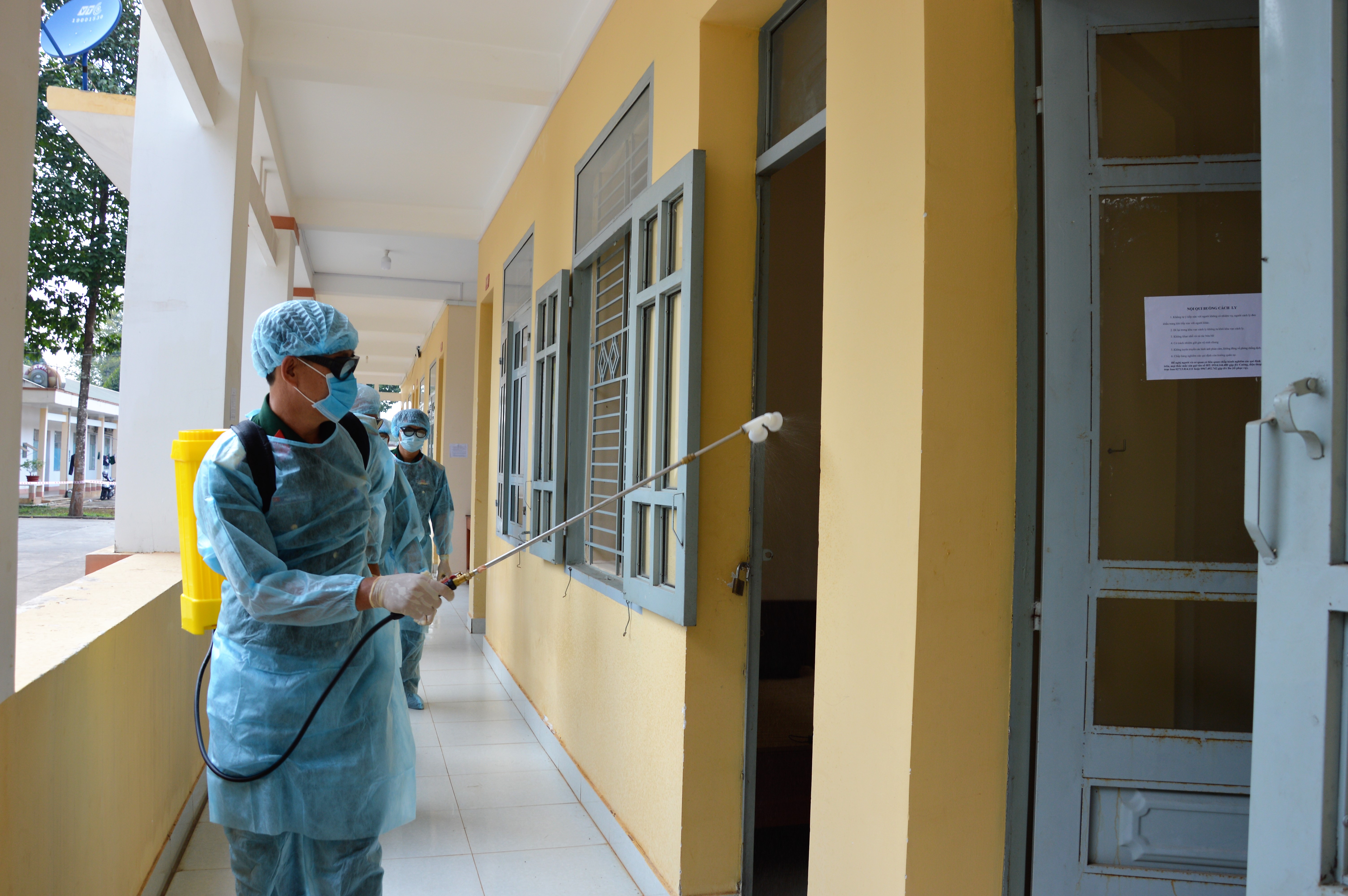 Ngành Quân y xịt thuốc khử khuẩn doanh trại.