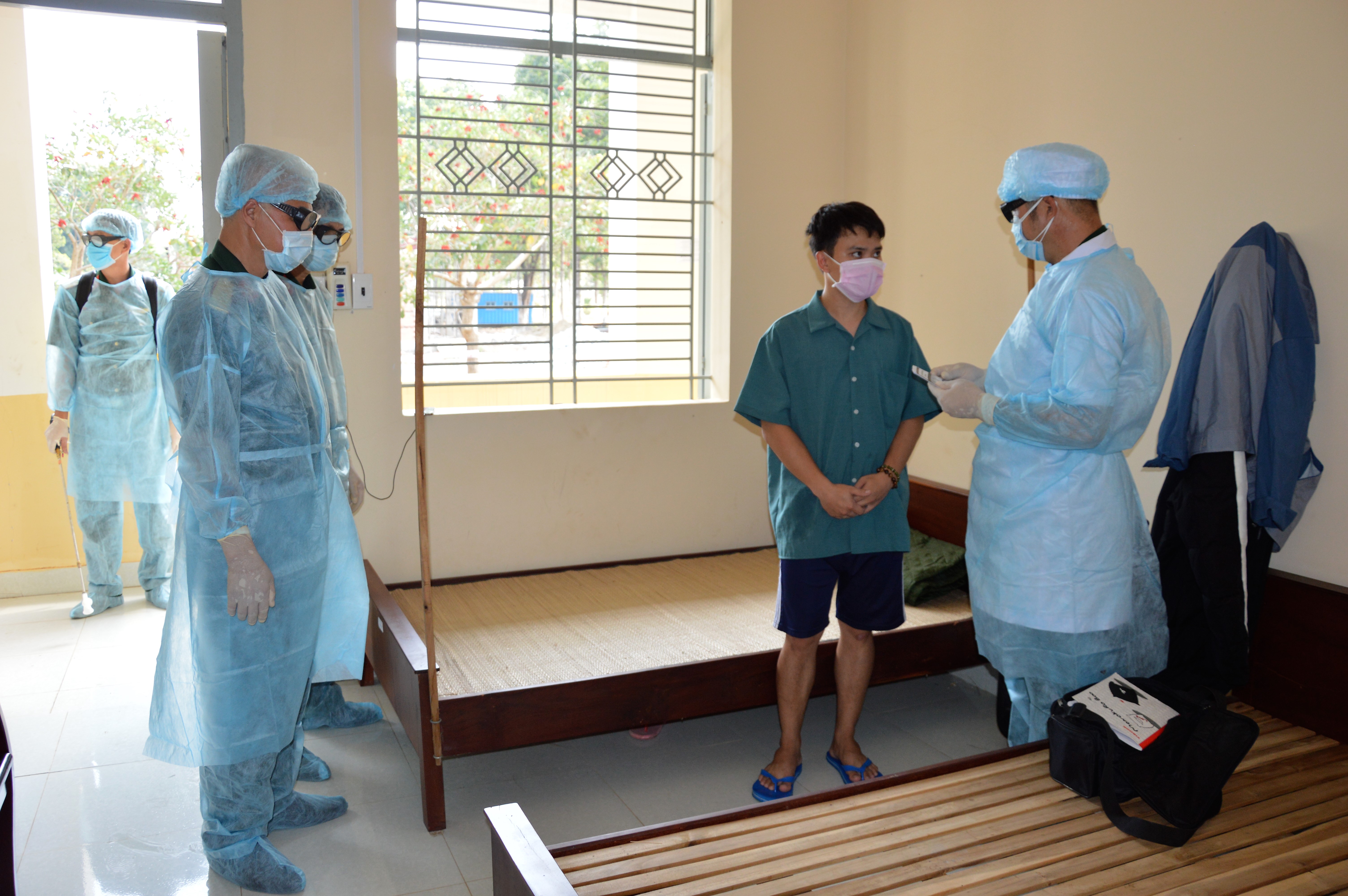 Chăm sóc công dân cách ly tại Trường Quân sự tỉnh.