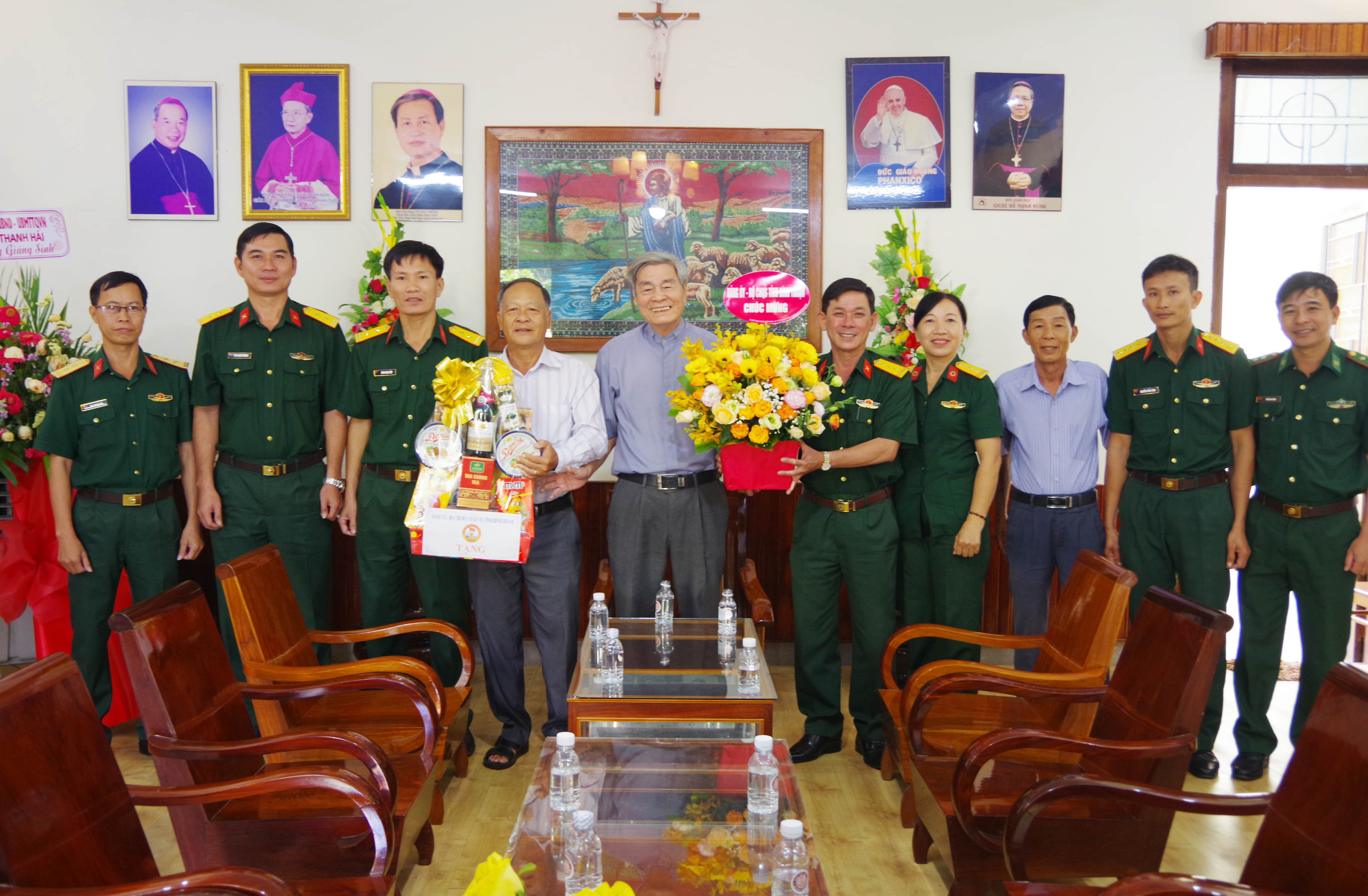 Đến thăm Tòa Giám mục Phan Thiết, thủ trưởng Bộ CHQS tỉnh chuyển lời chúc mừng Giáng sinh của Đảng ủy, Bộ Tư lệnh Quân khu 7 đến toàn thể đồng bào giáo dân tỉnh Bình Thuận có mùa Giáng sinh hạnh phúc, đủ đầy và trao tặng hoa, quà chúc mừng của Bộ Tư lệnh Quân khu 7 gồm 10 triệu đồng cho Tòa Giám mục Phan Thiết.