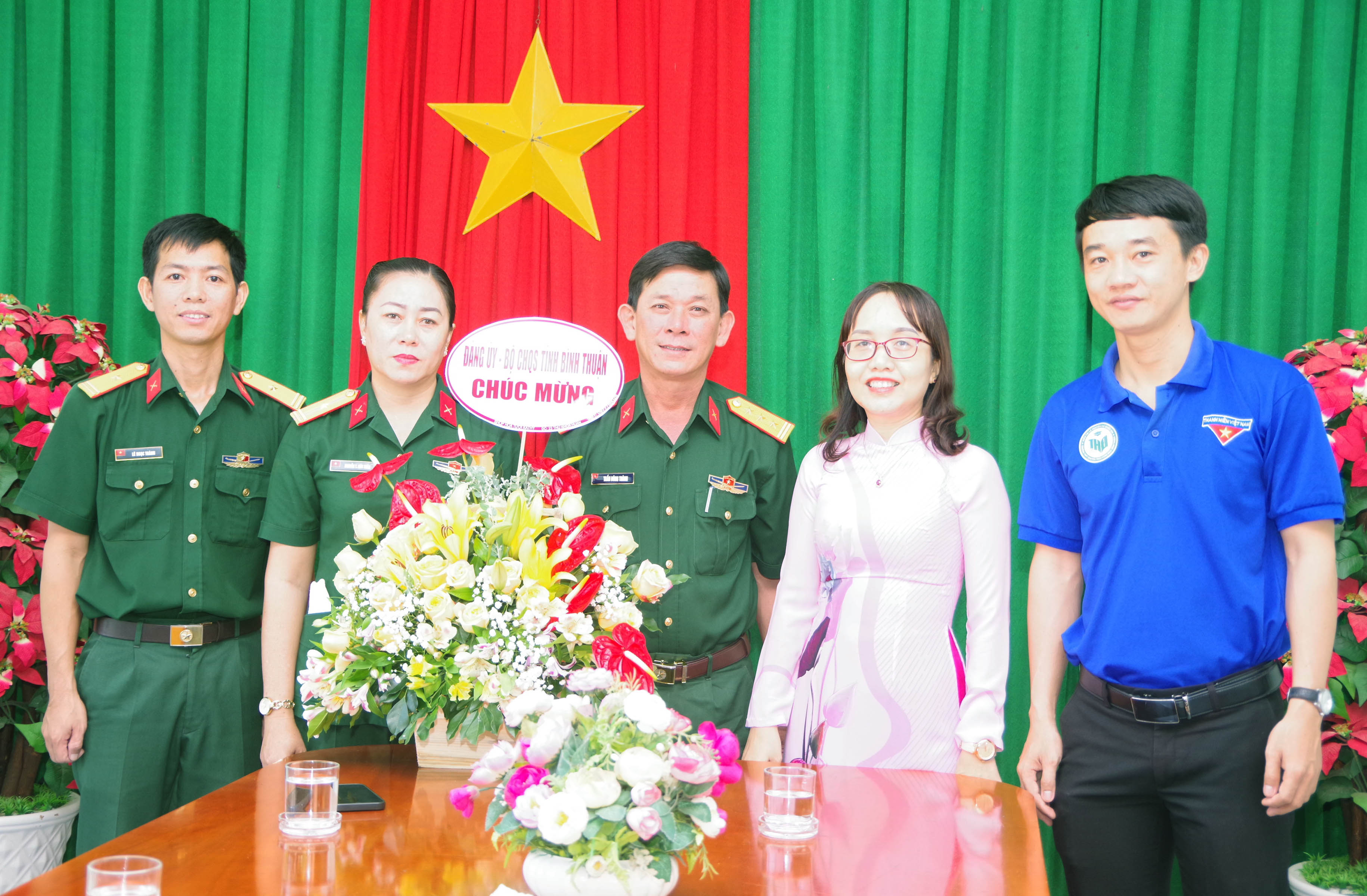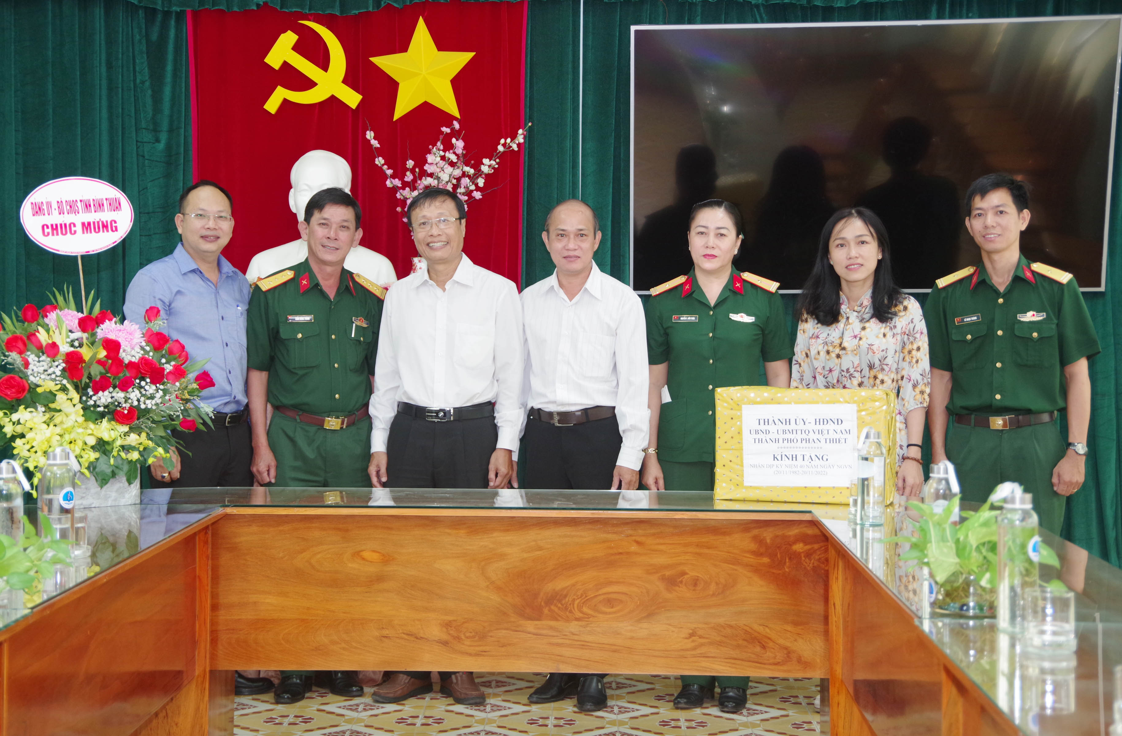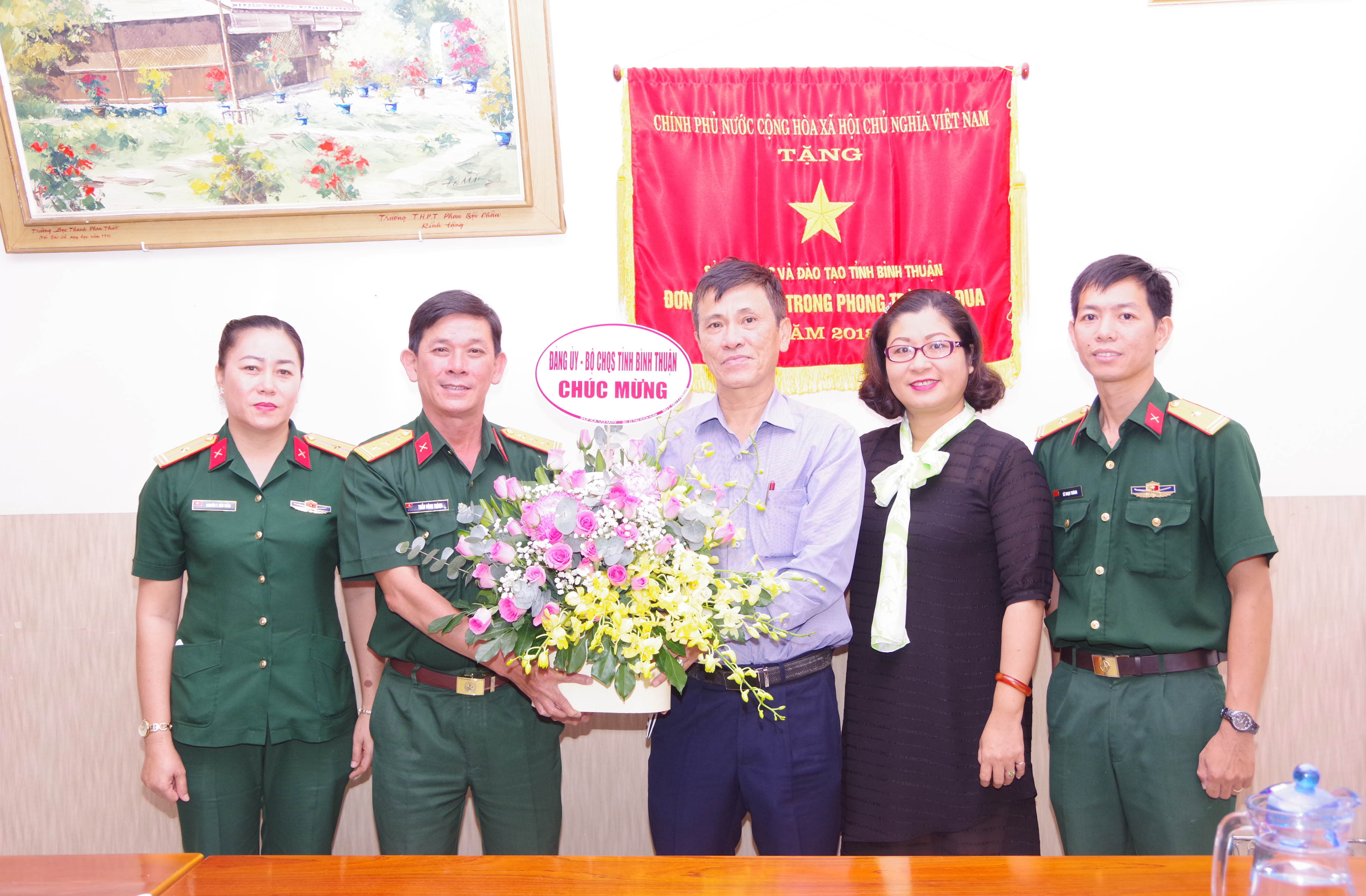 Thủ trưởng Bộ CHQS tỉnh Bình Thuận đến thăm, tặng hoa chúc mừng các nhà trường.