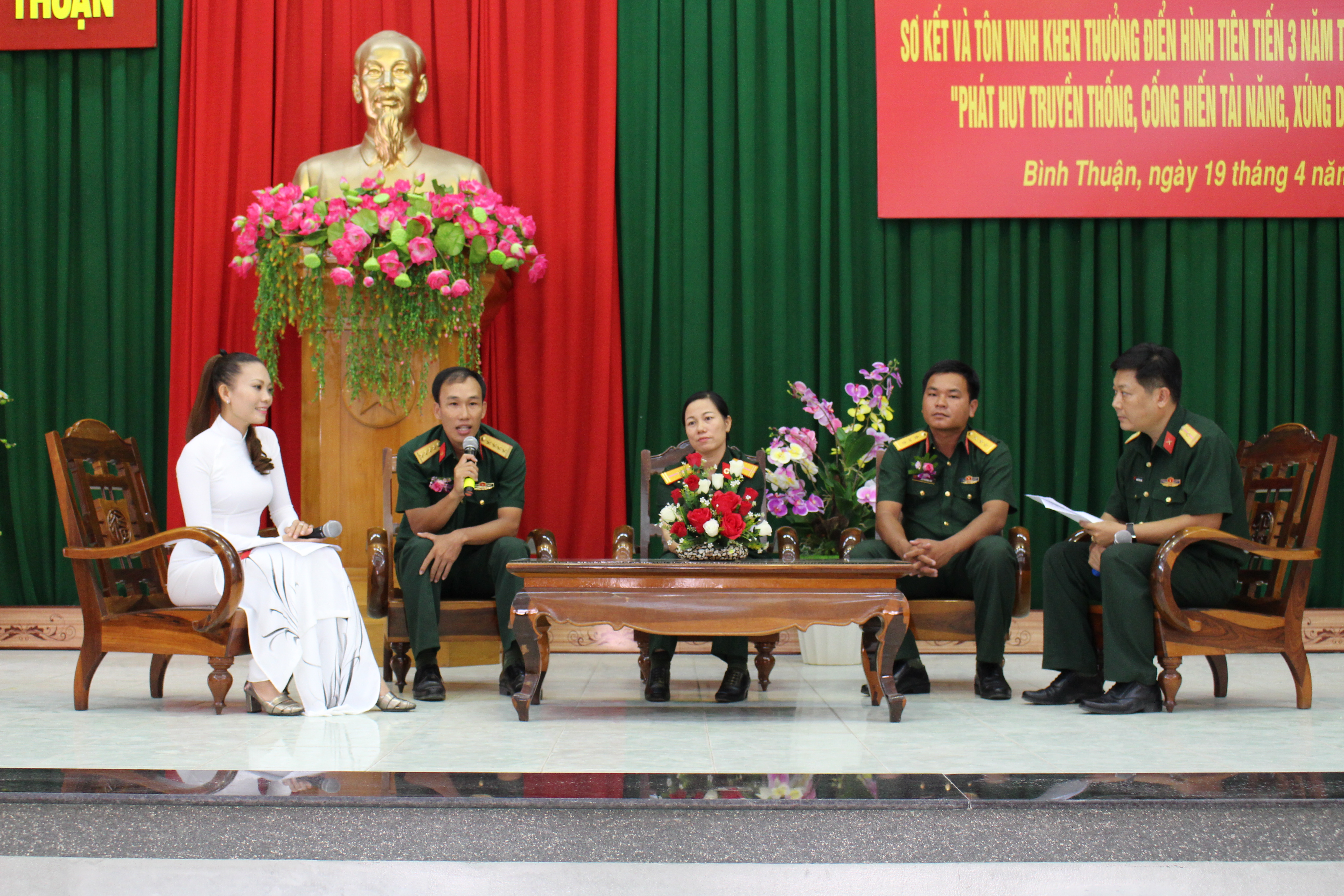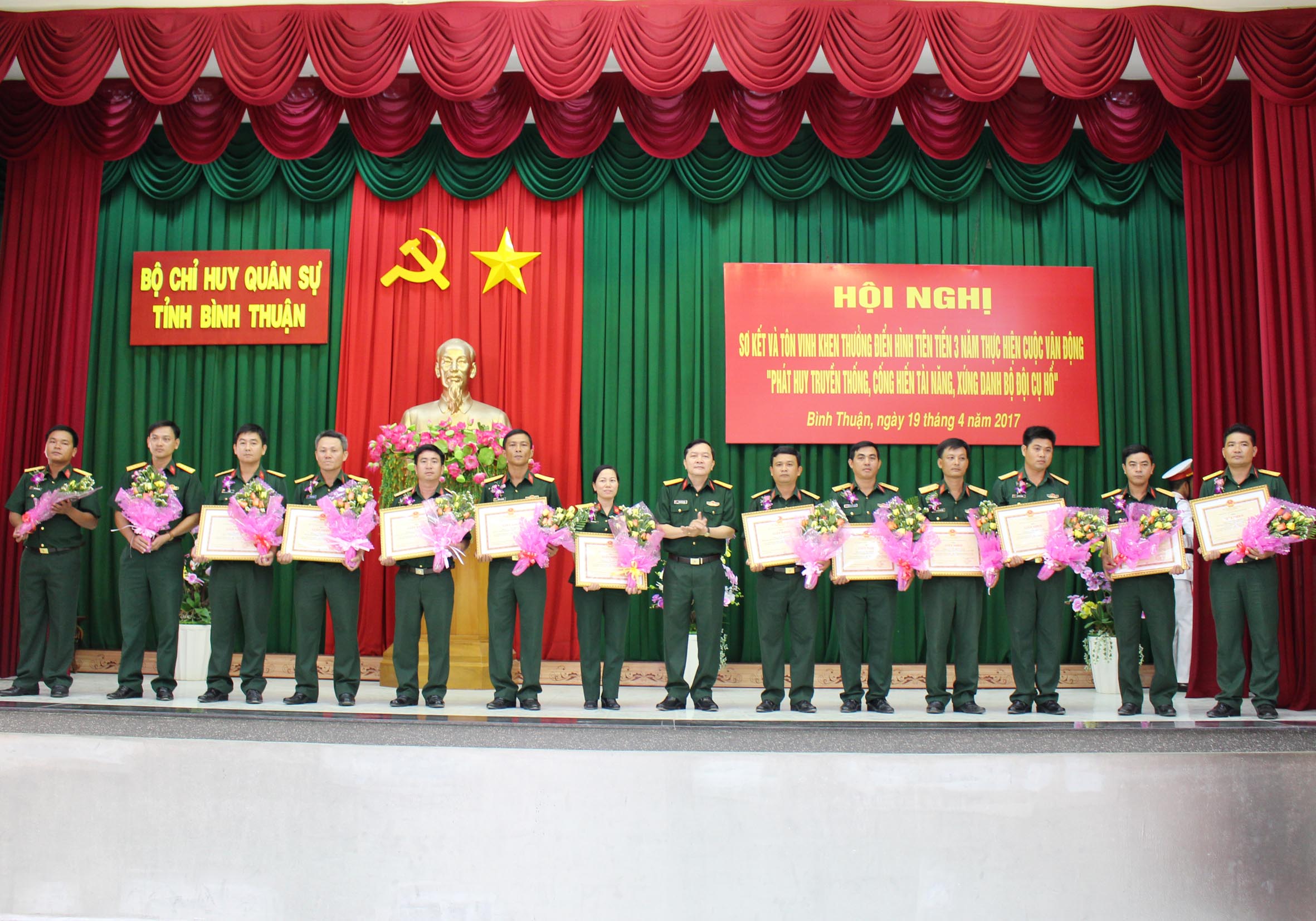 Đảng ủy Quân sự tỉnh Bình Thuận đã tôn vinh và khen thưởng cho 15 cá nhân điển hình tiêu biểu trong thực hiện Cuộc vận động “Phát huy truyền thống, cống hiến tài năng, xứng danh Bộ đội Cụ Hồ”.