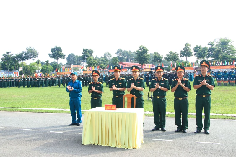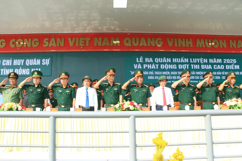 Các đại biểu dự lễ ra quân huấn luyện tại Bộ CHQS tỉnh Đồng Nai năm 2026.