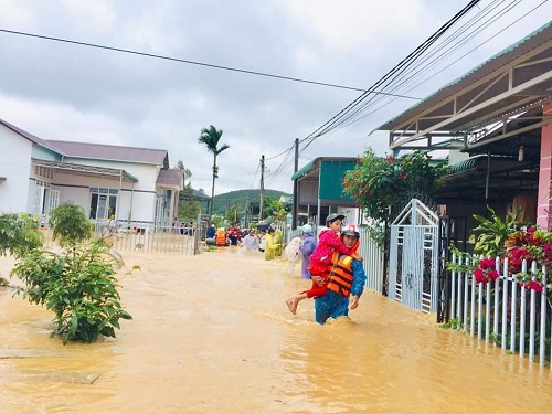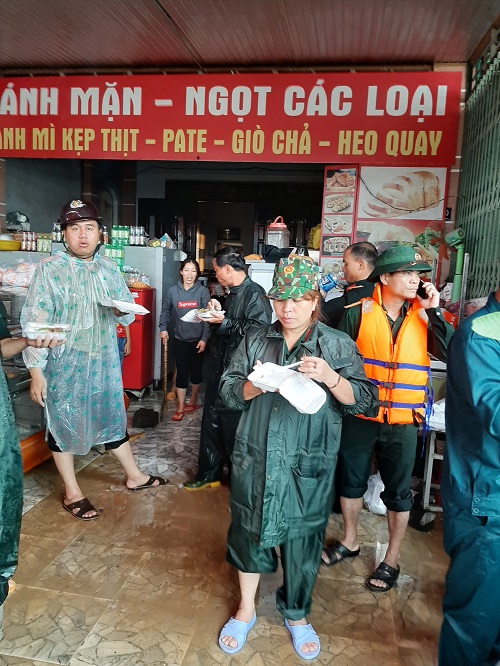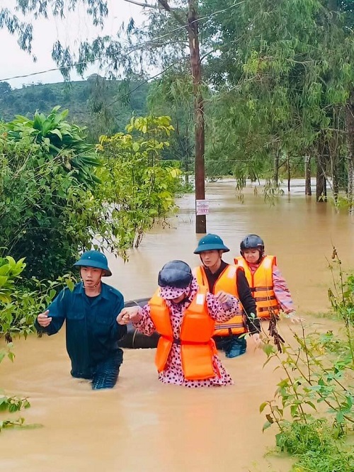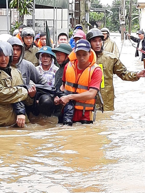 Giúp đưa người dân bị kẹt trong lũ đến nơi an toàn.
