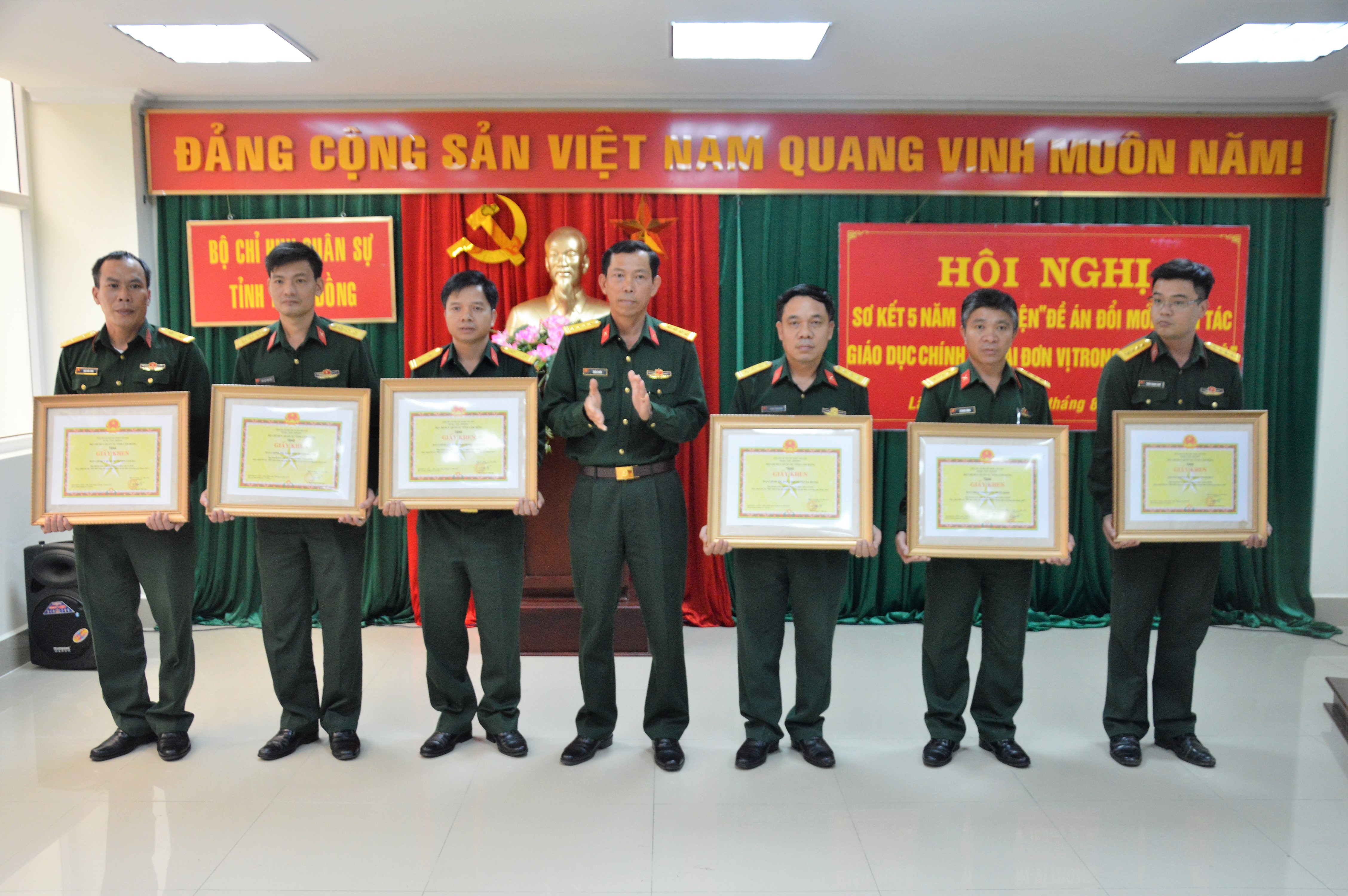 Đại tá Trần Chiến, Phó Chính ủy Bộ CHQS tỉnh Lâm Đồng trao khen thưởng cho các tập thể, cá nhân có thành tích xuất sắc trong thực hiện đề án.