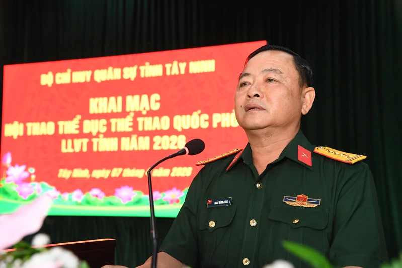 (QK7 Online) - Ngày 7/4, tại Tiểu đoàn 14, Trung đoàn 174, Bộ CHQS tỉnh Tây Ninh khai mạc Hội thao thể dục thể thao quốc phòng LLVT tỉnh năm 2026. Đại tá Trần Đình Hưng, Phó Chỉ huy trưởng, Tham mưu trưởng Bộ CHQS tỉnh dự và phát biểu khai mạc.