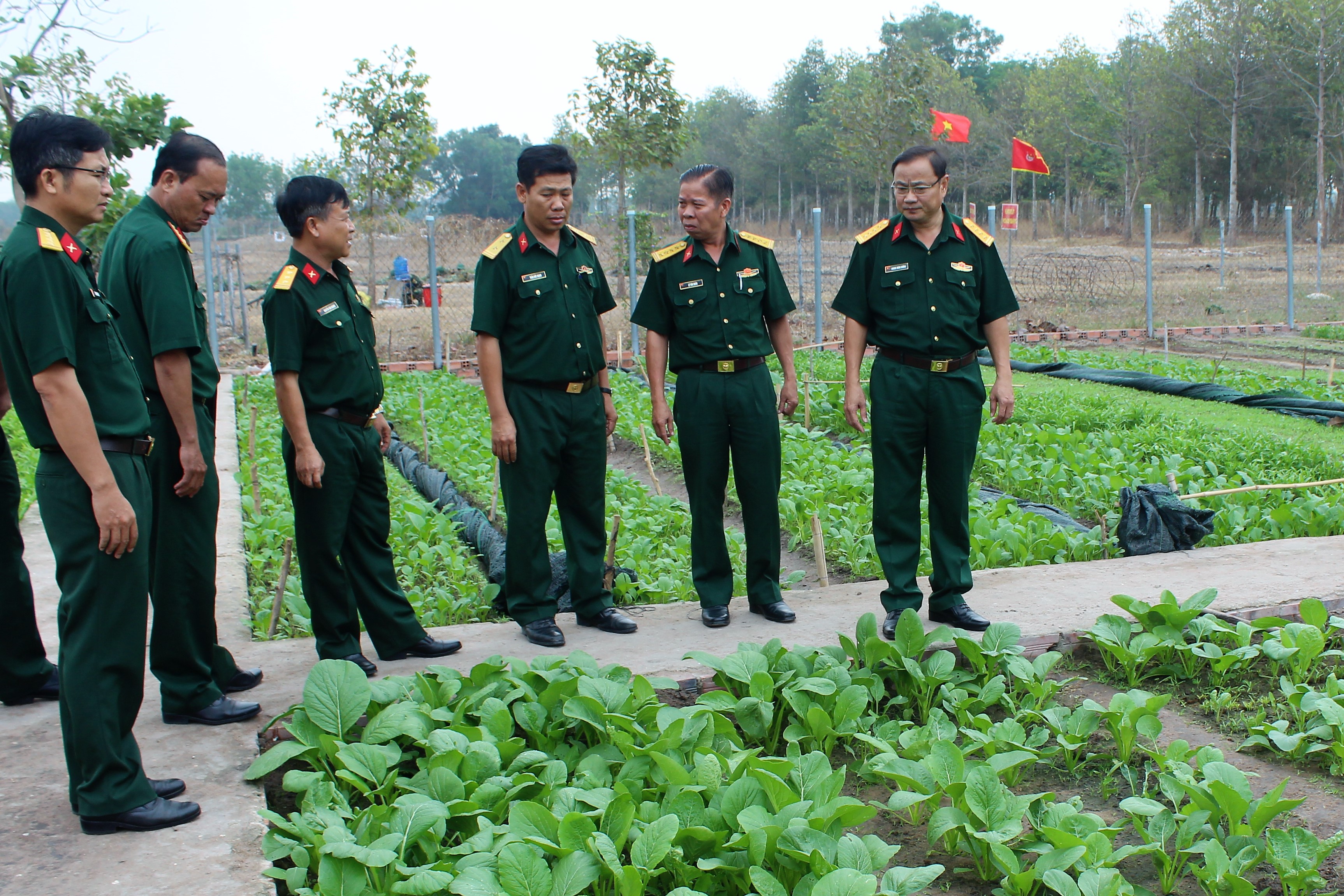 Đại tá Hoàng Xuân Cường kiểm tra khu vực tăng gia.