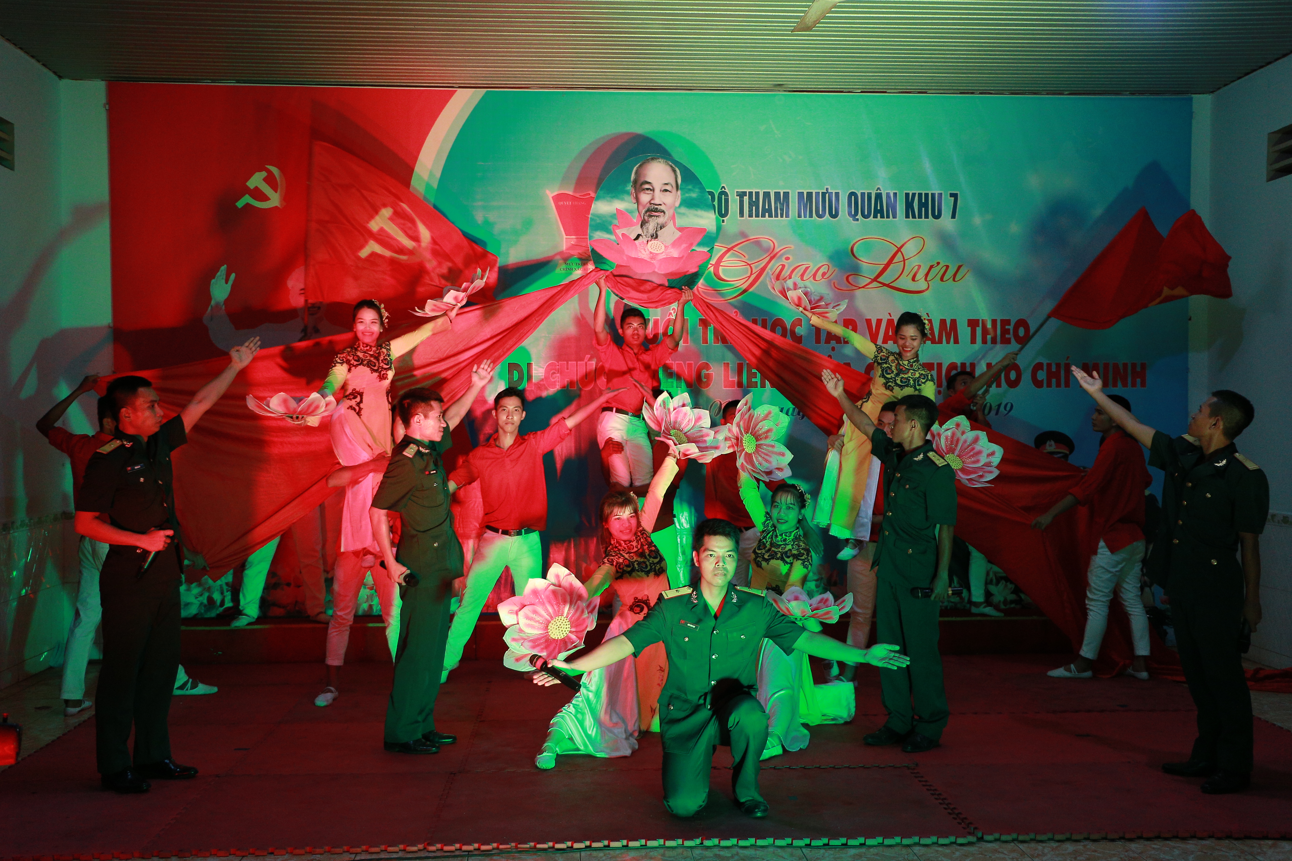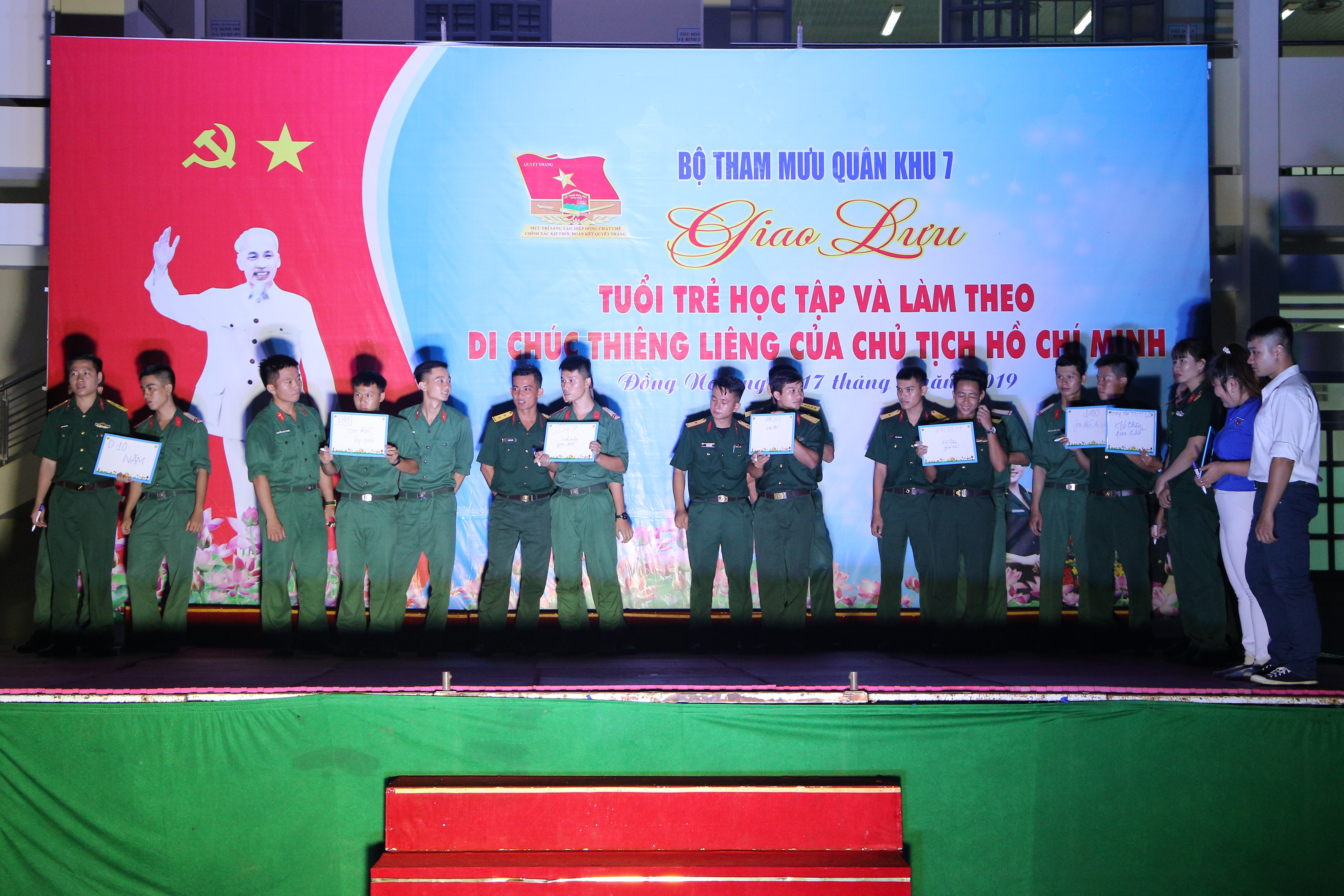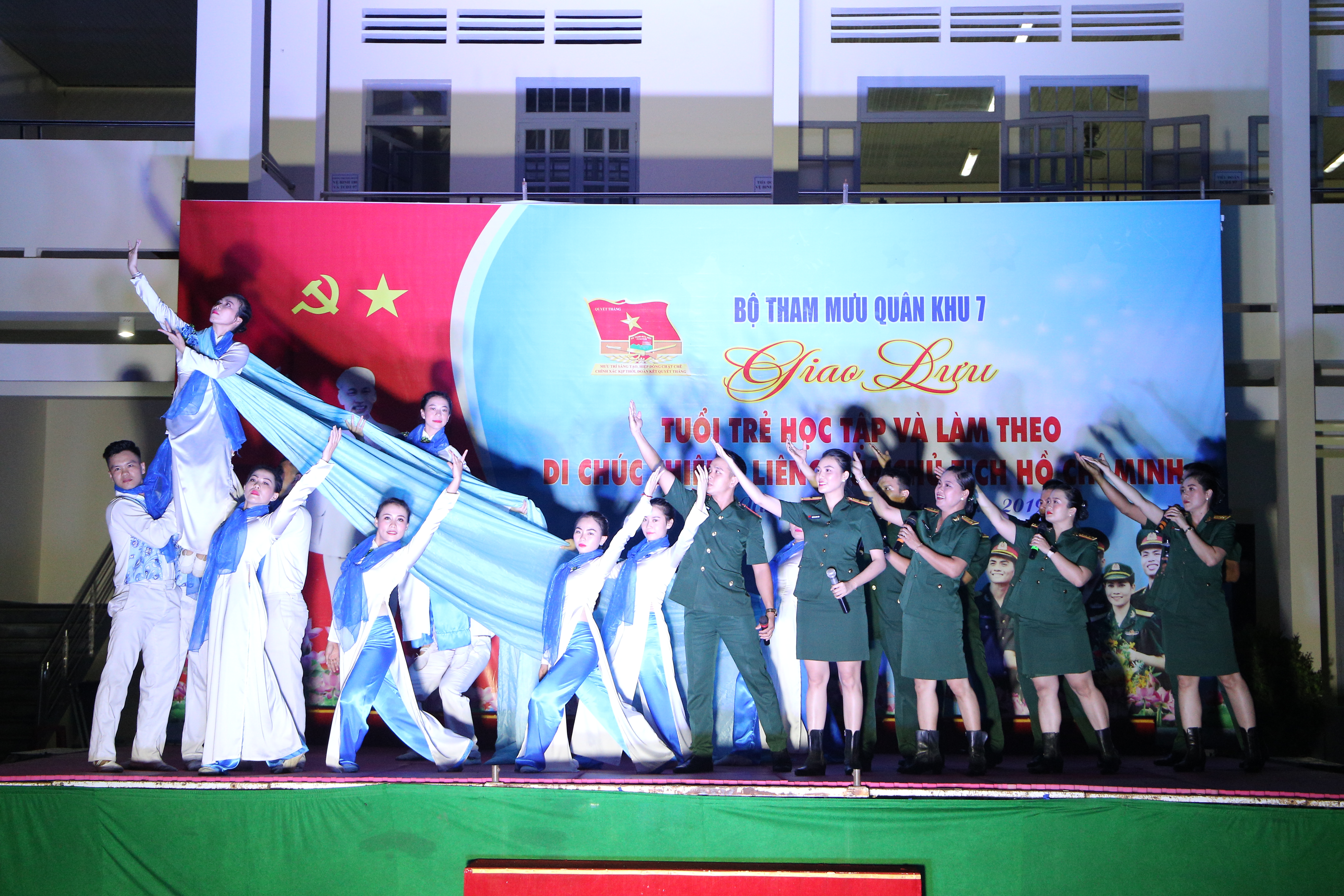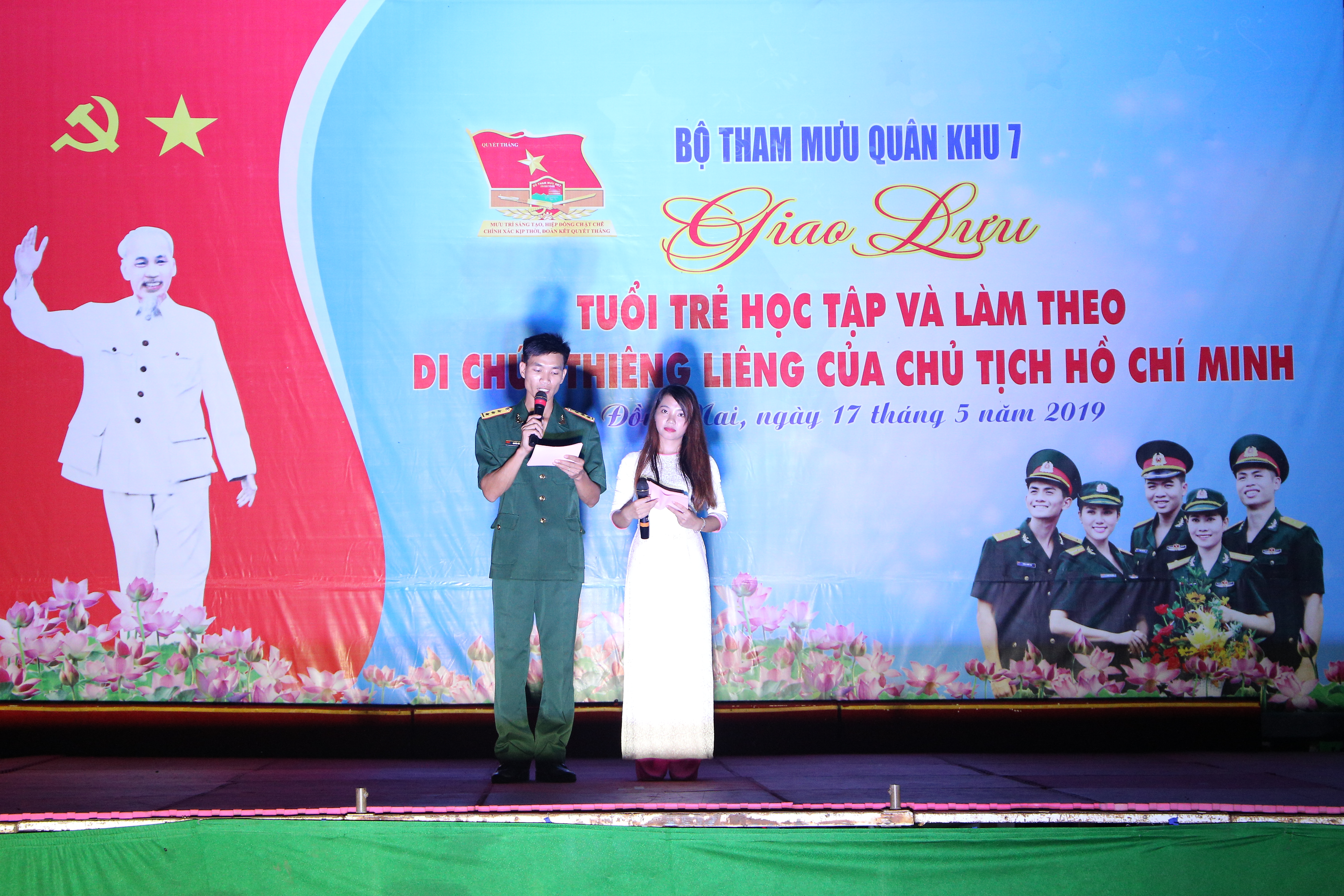 (QK7 Online) - Tối ngày 17/5, tại Tiểu đoàn Phòng hóa 38, Bộ Tham mưu Quân khu 7 tổ chức đêm giao lưu văn nghệ với chủ đề “Tuổi trẻ Bộ Tham mưu học tập và làm theo Di chúc thiêng liêng của Chủ tịch Hồ Chí Minh” chào mừng kỷ niệm 129 năm ngày sinh Chủ tịch Hồ Chí Minh (19/5/1890 – 19/5/2019), 60 năm ngày mở Đường Trường Sơn – Đường Hồ Chí Minh (19/5/1959 – 19/5/2019) và 50 năm ngày thực hiện Di chúc của Chủ tịch Hồ Chí Minh (02/9/1969 – 02/9/2019).