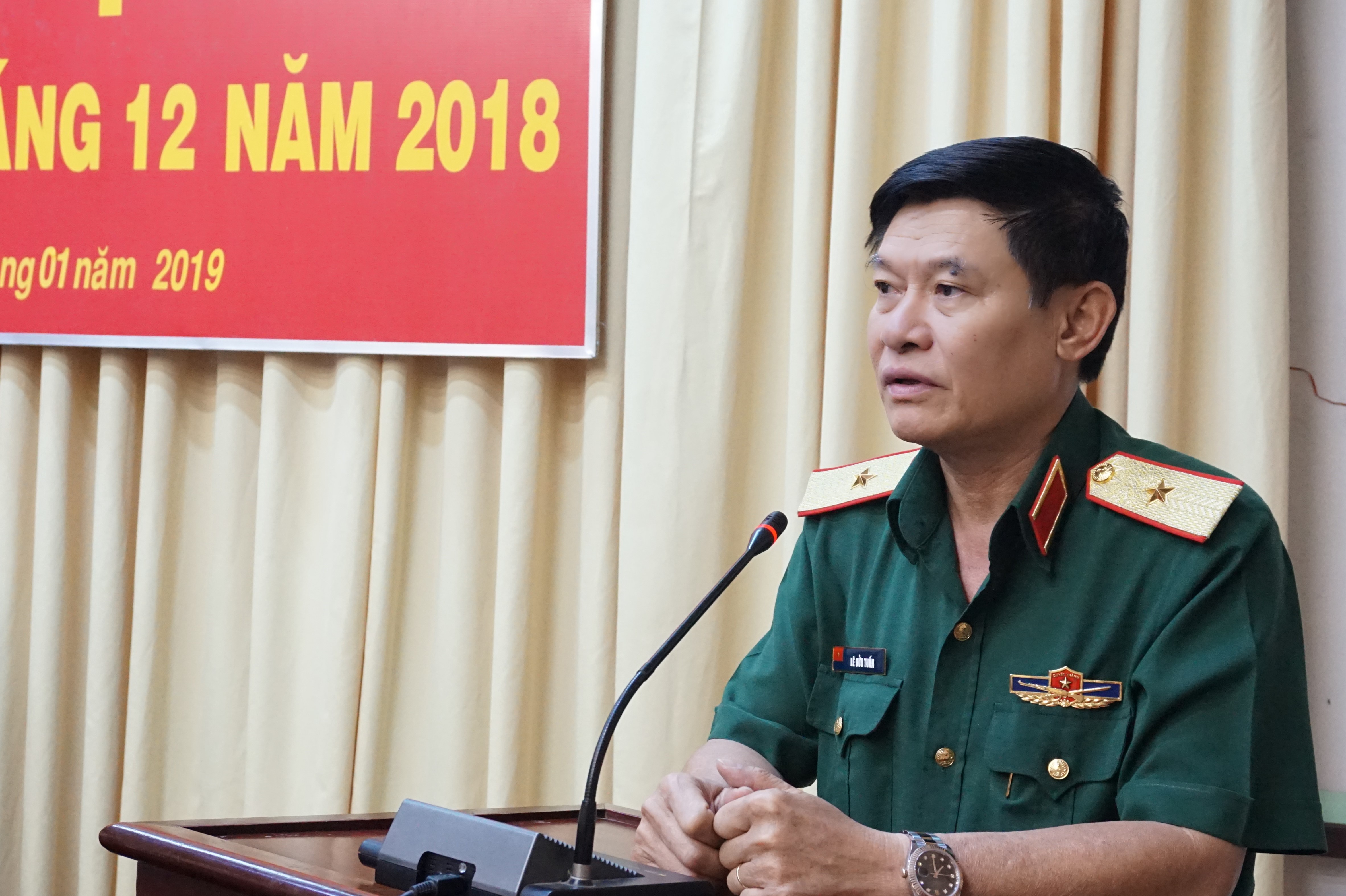 Thiếu tướng Lê Bửu Tuấn - Phó Tư lệnh, Tham mưu trưởng Quân khu phát biểu tại hội nghị