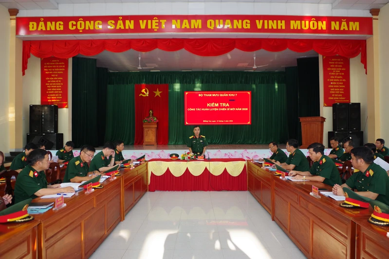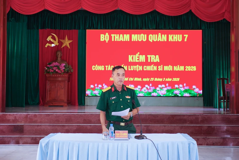 (QK7 Online) - Ngày 25/3, thừa ủy quyền Thủ trưởng Bộ Tham mưu Quân khu, Đại tá Phạm Tiến Cường, Trưởng phòng Quân huấn - Nhà trường, Bộ Tham mưu Quân khu 7 cùng đoàn công tác đã tiến hành kiểm tra công tác huấn luyện chiến sĩ mới năm 2026 tại Trung đoàn 736 (Bộ CHQS tỉnh Đồng Nai), Tiểu đoàn Huấn luyện - Cơ động (Ban Chỉ huy Bộ đội Biên phòng, Bộ CHQS tỉnh Đồng Nai) và Trung đoàn 6 (Bộ Tư lệnh TP. Hồ Chí Minh).