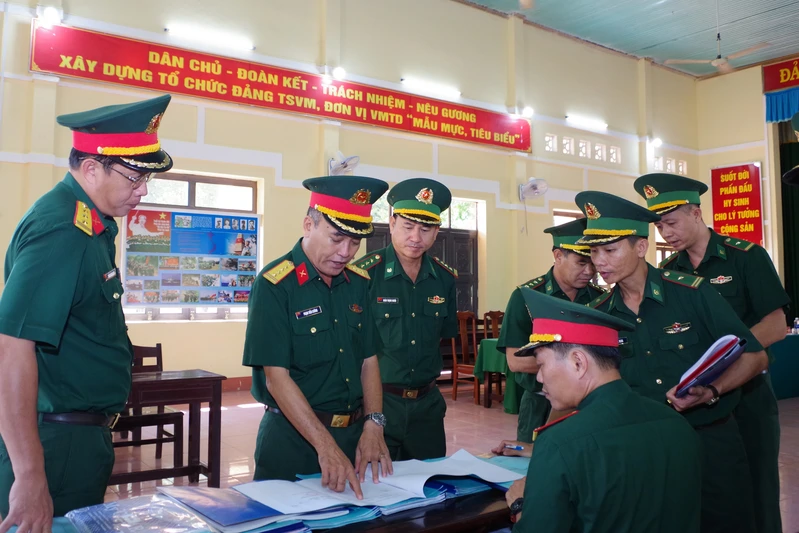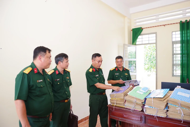 Đoàn công tác kiểm tra hệ thống sổ sách huấn luyện tại Trung đoàn 736.