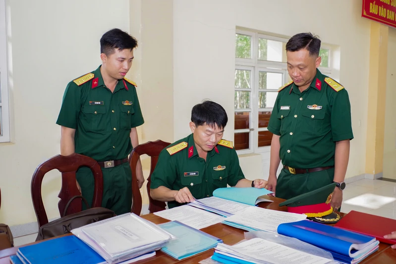 Đoàn công tác thống nhất sắp đặt tài liệu tại Trung đoàn 6 (Bộ Tư lệnh TP. Hồ Chí Minh).