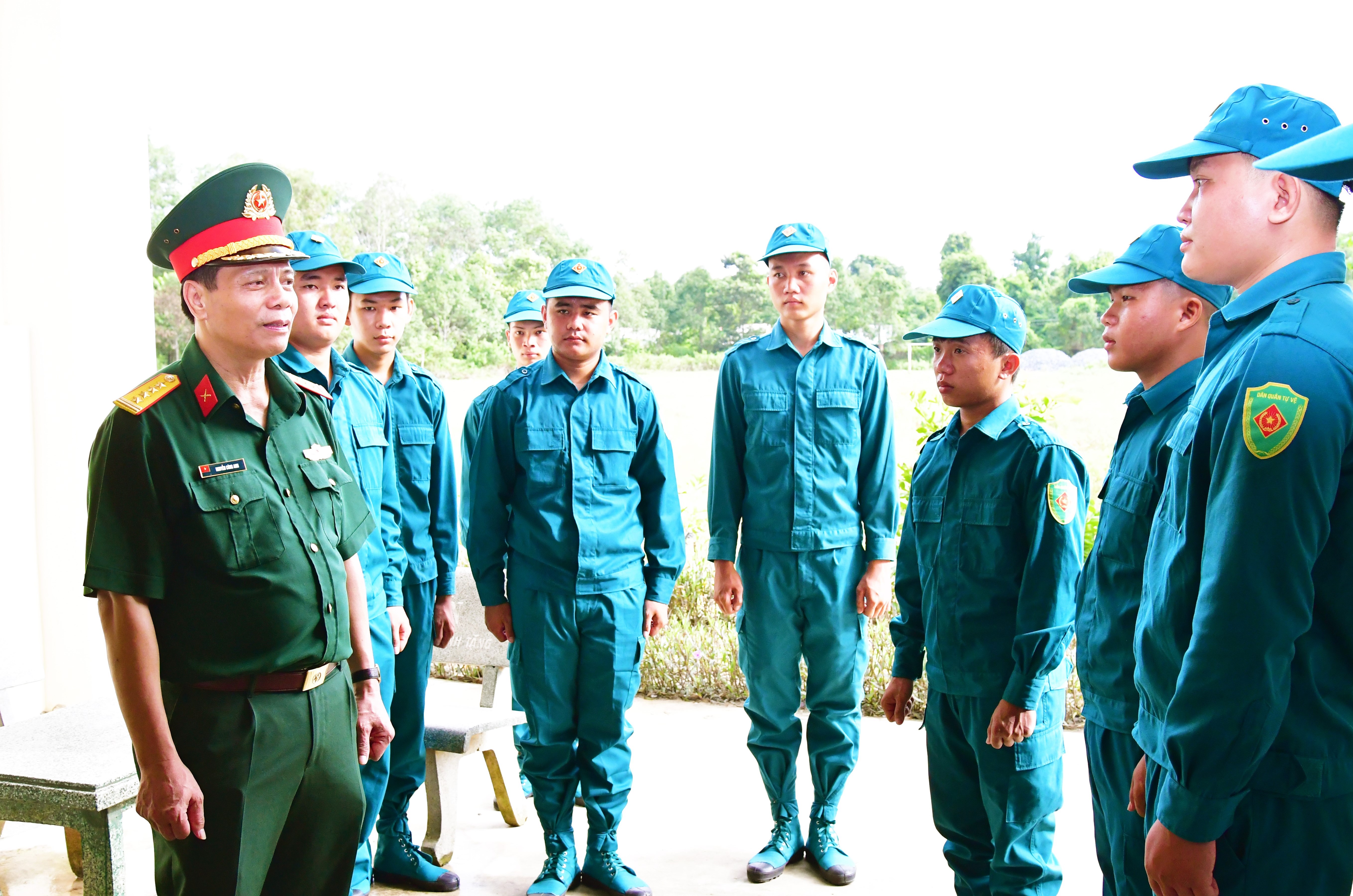 Đại tá Nguyễn Công Anh, Phó Chủ nhiệm Chính trị Quân khu kiểm tra nhận thức chính trị đối với Dân quân thường trực Ban CHQS xã Hòa Thạnh.