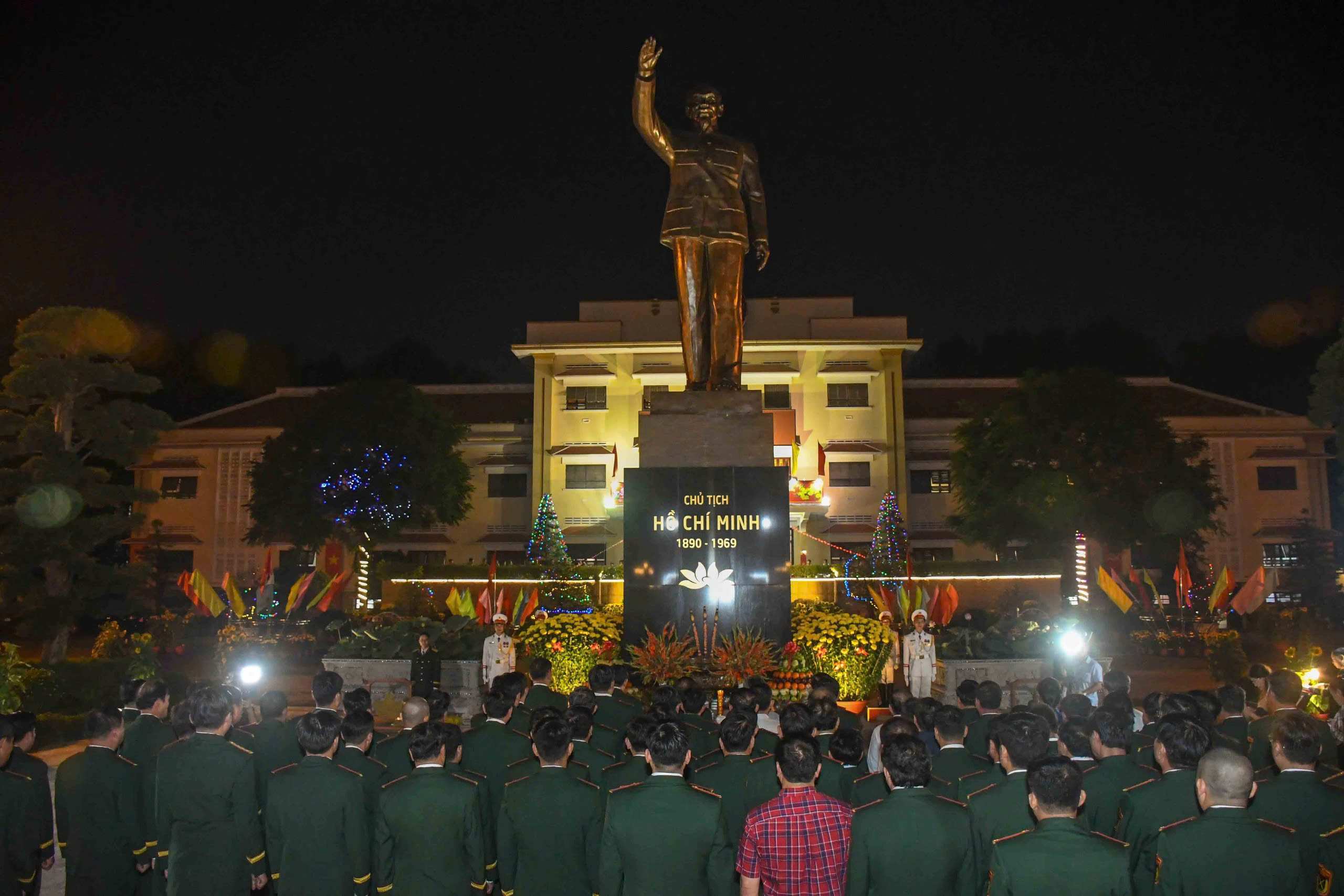 (QK7 Online) - Tối 28/1, nhân dịp chuẩn bị bước sang năm mới, Xuân Ất Tỵ 2025 và kỷ niệm 95 năm Ngày thành lập Đảng Cộng sản Việt Nam (3/2/1930-3/2/2025), Bộ Tư lệnh Quân khu 7 tổ chức dâng hoa, dâng hương tại Đài tưởng niệm Chủ tịch Hồ Chí Minh trong khuôn viên Sở Chỉ huy Quân khu 7.
