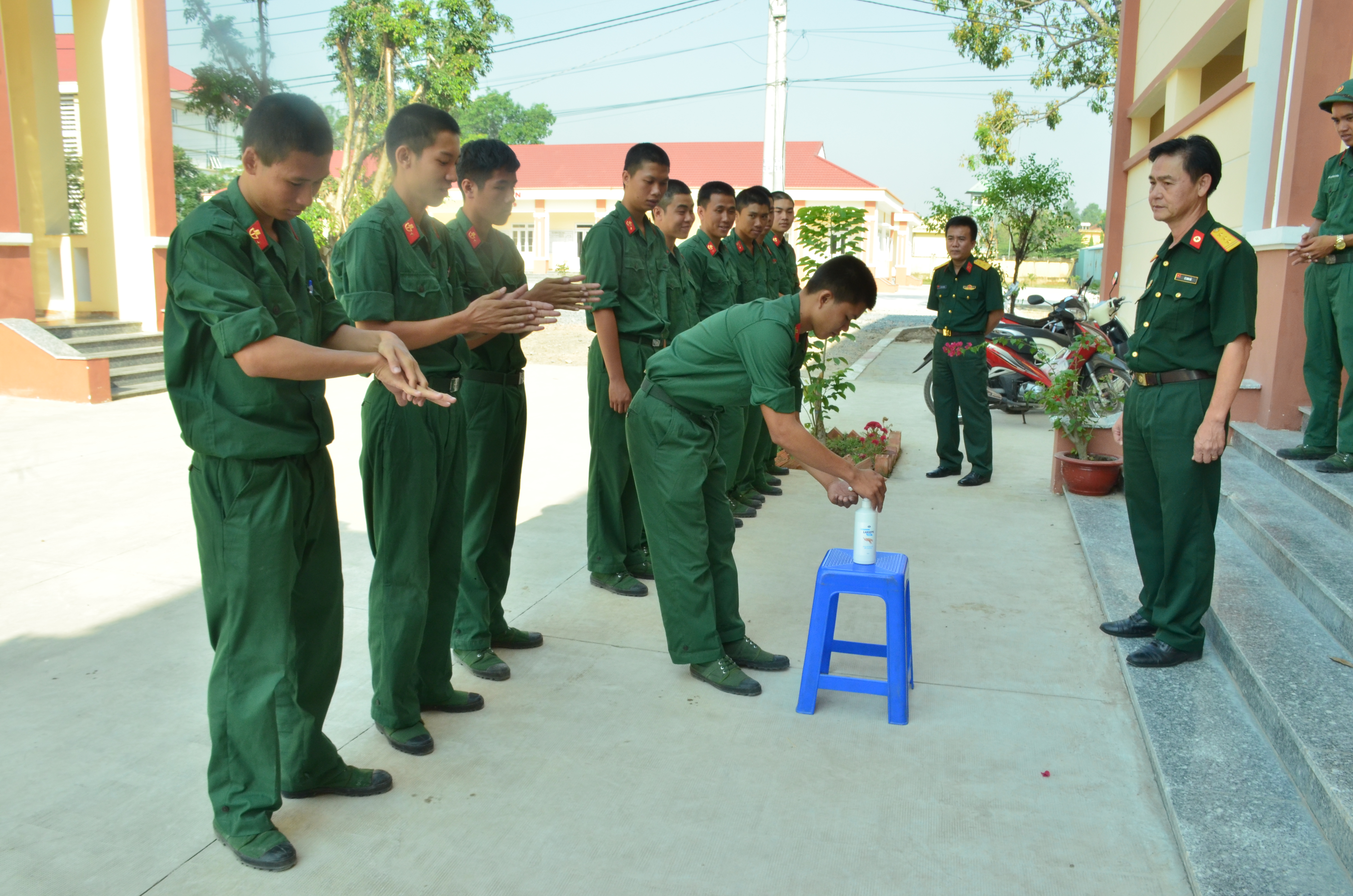 Kiểm tra qui cách rửa tay sát khuẩn của chiến sĩ mới