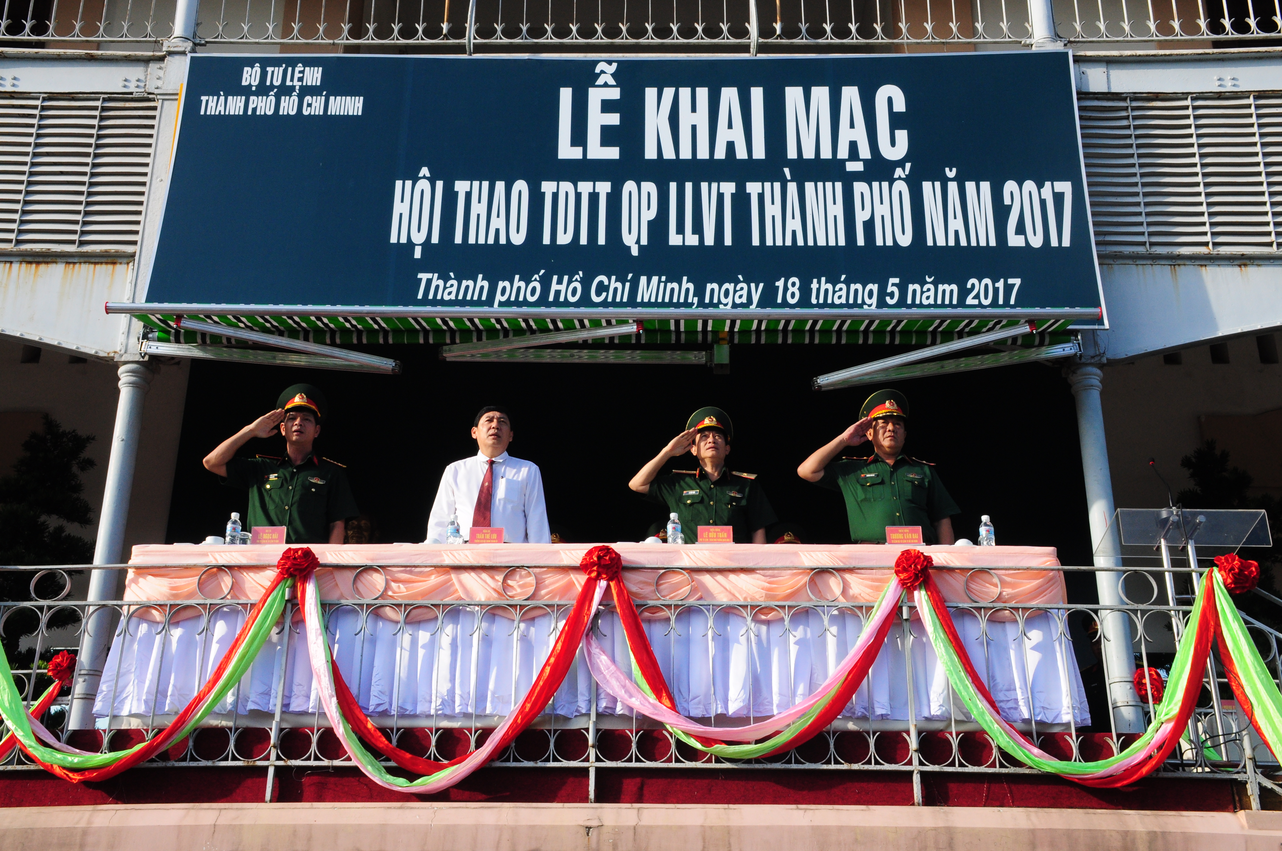 Các đại biểu dự lễ khia mạc hội thao thể dục thể thao lực lượng vũ trang Thành phố Hồ Chí Minh năm 2017