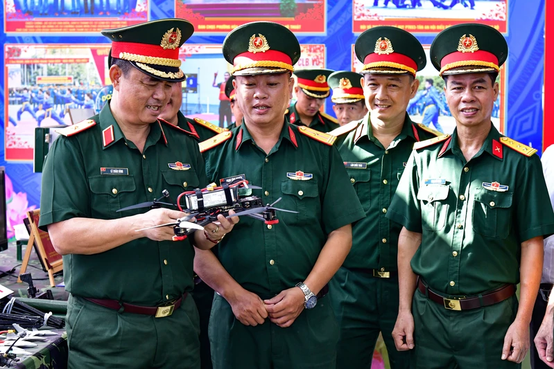 Thiếu tướng Lê Xuân Bình Phó Tư lệnh, Tham mưu trưởng Quân khu tham quan sáng kiến, cải tiến kỹ thuật tại Lễ ra quân huấn luyện năm 2026 Bộ Tư lệnh Thành phố Hồ Chí Minh.