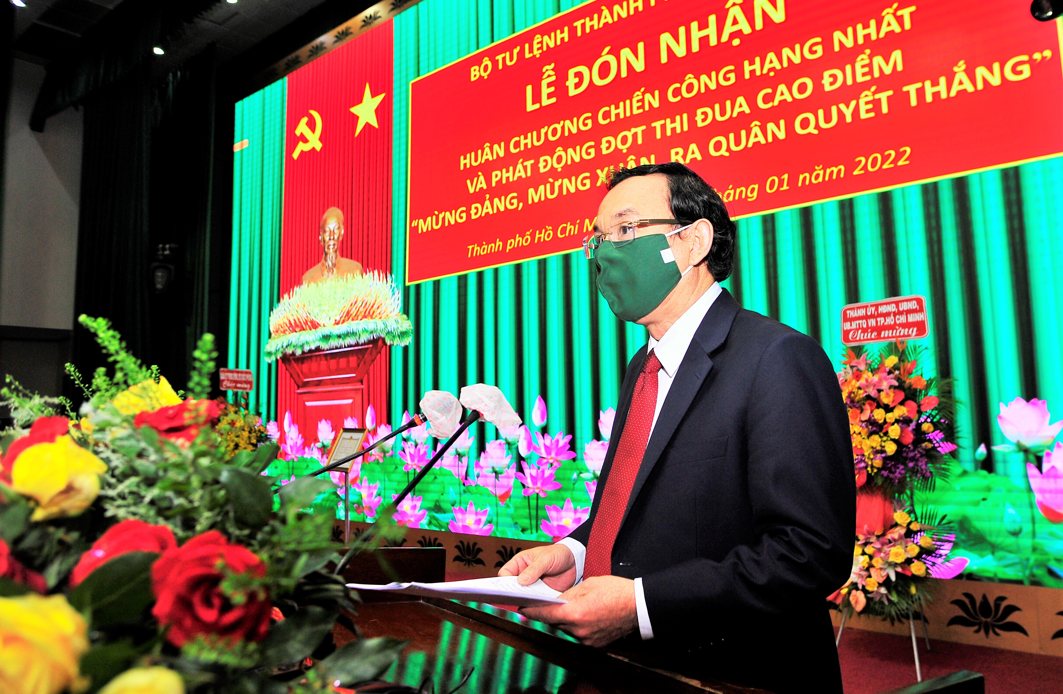 Phát biểu tại buổi lễ, đồng chí Nguyễn Văn Nên cảm ơn Quân ủy Trung ương - Bộ Quốc phòng, Đảng ủy - Bộ Tư lệnh Quân khu 7 và các đơn vị, địa phương trên cả nước đã hỗ trợ, giúp đỡ TP.HCM trong những ngày gian khó do đại dịch. Đồng chí Bí thư Thành ủy TP.HCM đánh giá cao vai trò quan trọng của LLVT Thành phố trong phòng, chống dịch, trong đó nổi bật là phối hợp chặt chẽ với các lực lượng chức năng nắm, đánh giá, dự báo sát tình hình dịch bệnh, chủ động, quyết liệt tham mưu Thành ủy, UBND Thành phố lãnh đạo, chỉ đạo toàn diện, kịp thời, có hiệu quả các giải pháp cấp bách trong phòng, chống dịch; huy động số lượng rất lớn bộ đội, dân quân và nhiều phương tiện, trang thiết bị, cơ sở vật chất tham gia phòng, chống dịch; xung phong đảm nhận và hoàn thành xuất sắc nhiều nhiệm vụ khó khăn, phức tạp, thậm chí chưa có tiền lệ; tham gia rất hiệu quả và có nhiều sáng tạo trong huy động nguồn lực chống dịch, cứu dân, đảm bảo an sinh xã hội.