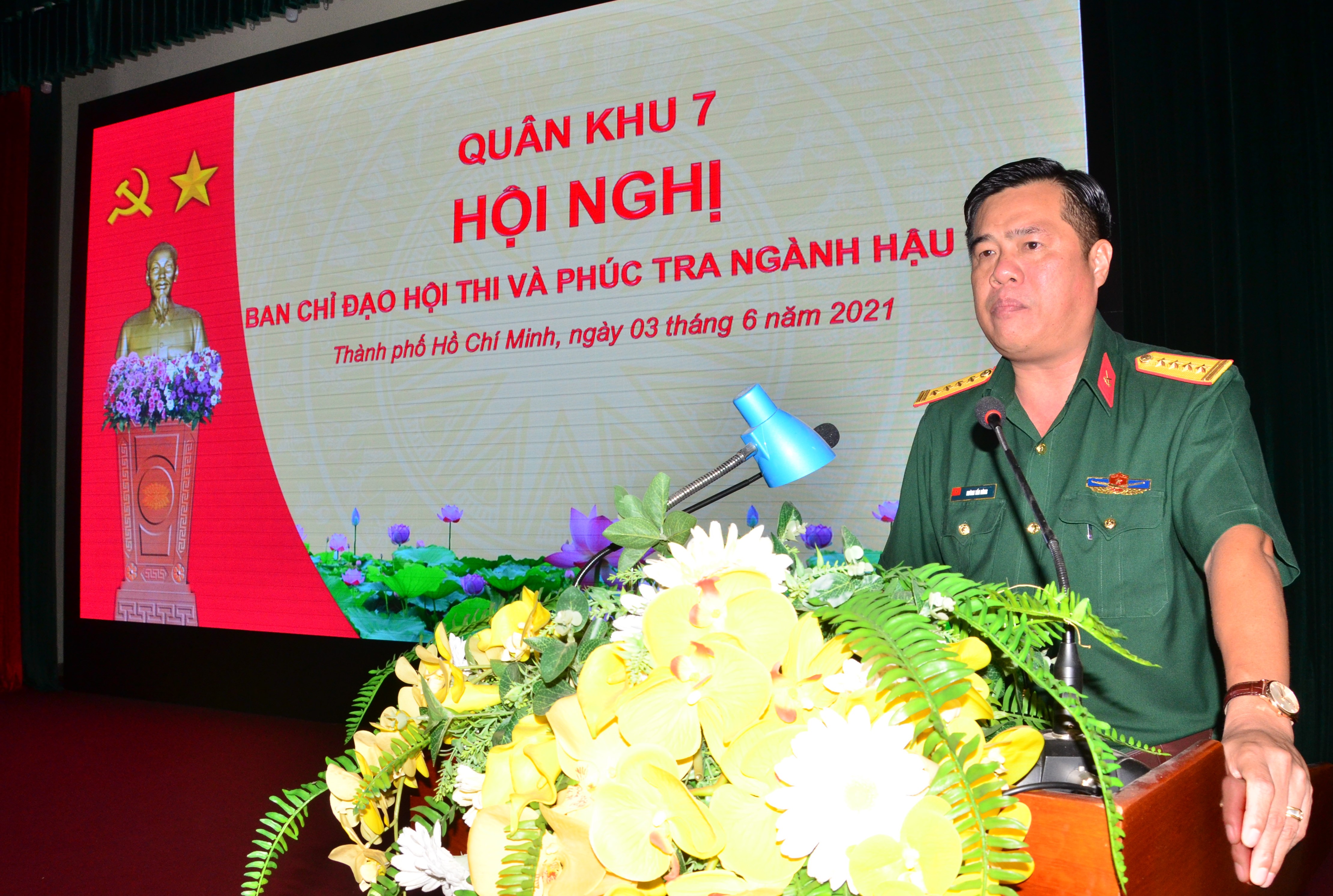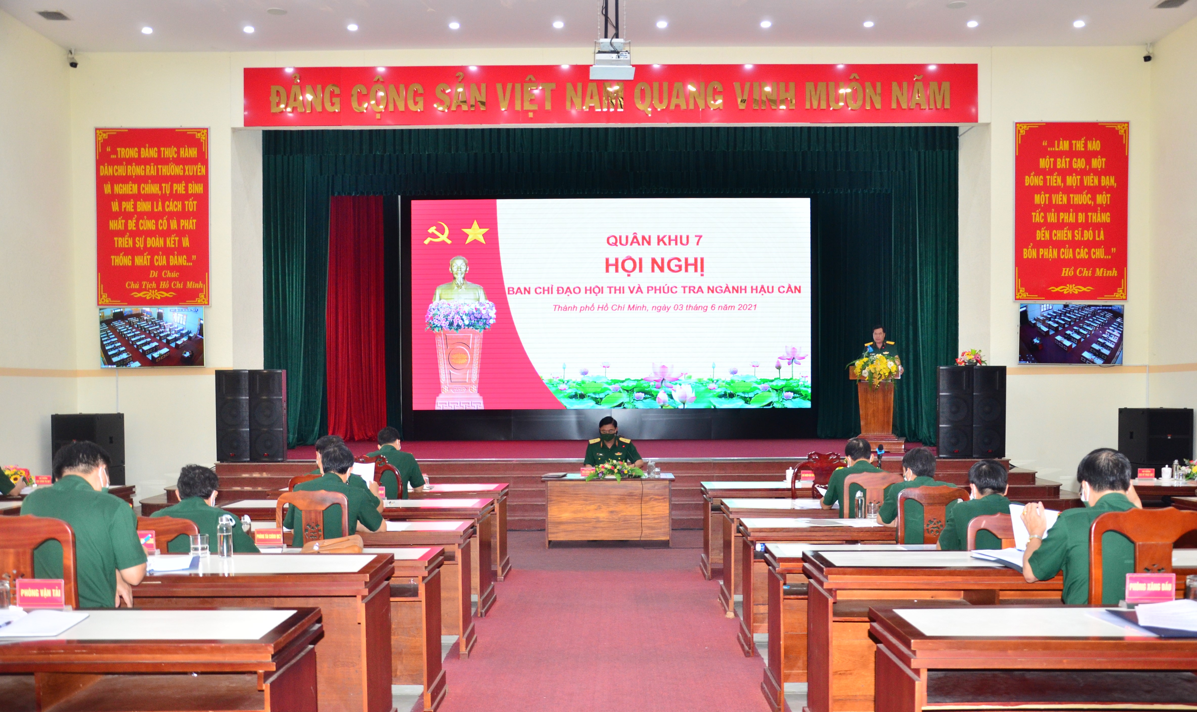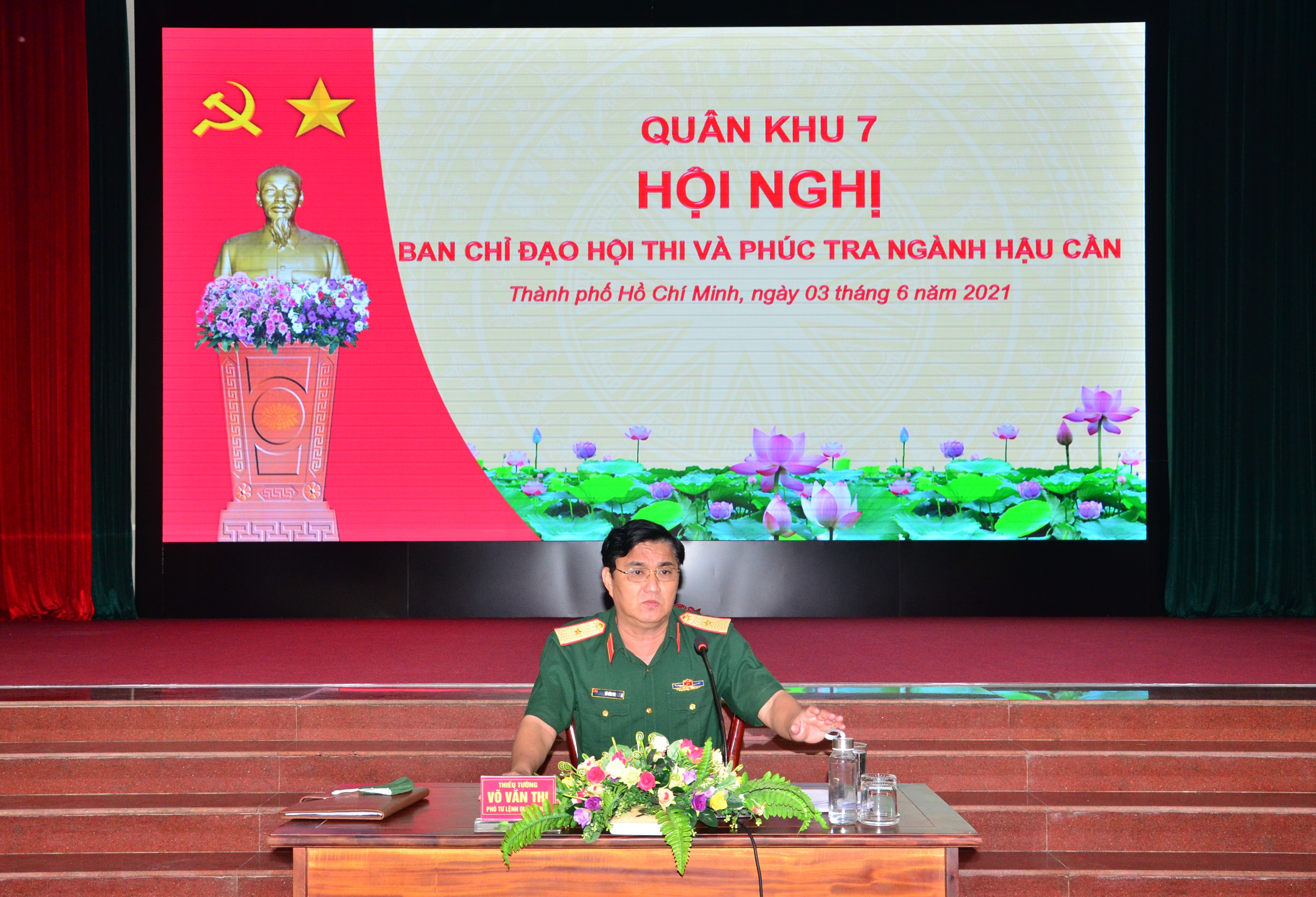 (QK7 Online) - Ngày 3/6, Ban Chỉ đạo hội thi và phúc tra ngành Hậu cần tổ chức hội nghị triển khai công tác chuẩn bị tham gia hội thi và phúc tra ngành Hậu cần năm 2021 do Tổng cục Hậu cần tổ chức. Thiếu tướng Võ Văn Thi, Phó Tư lệnh Quân khu – Trưởng ban Chỉ đạo hội thi Quân khu 7 chủ trì hội nghị.