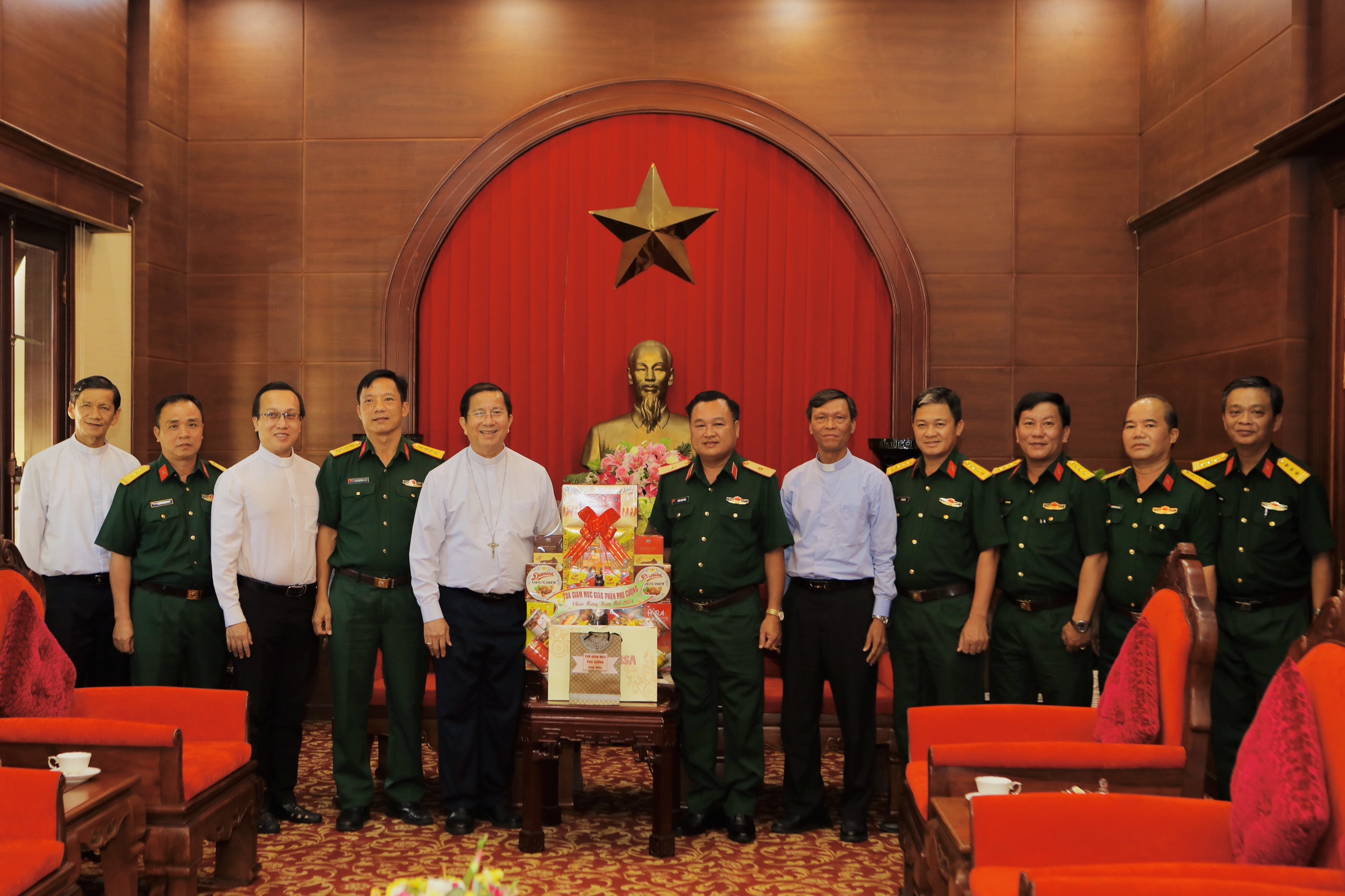 Đoàn Tổng Giám mục Phú Cường chúc Tết LLVT Quân khu.