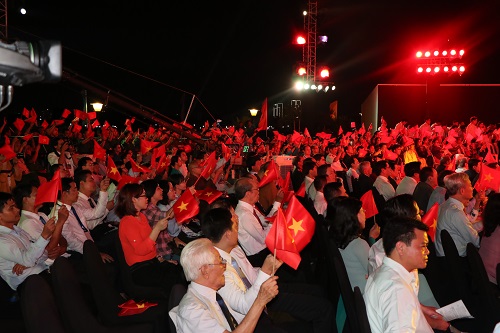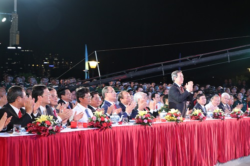 Quang cảnh tại sân khấu Bến cảng Nhà Rồng, nơi tổ chức điểm cầu tại TPHCM.