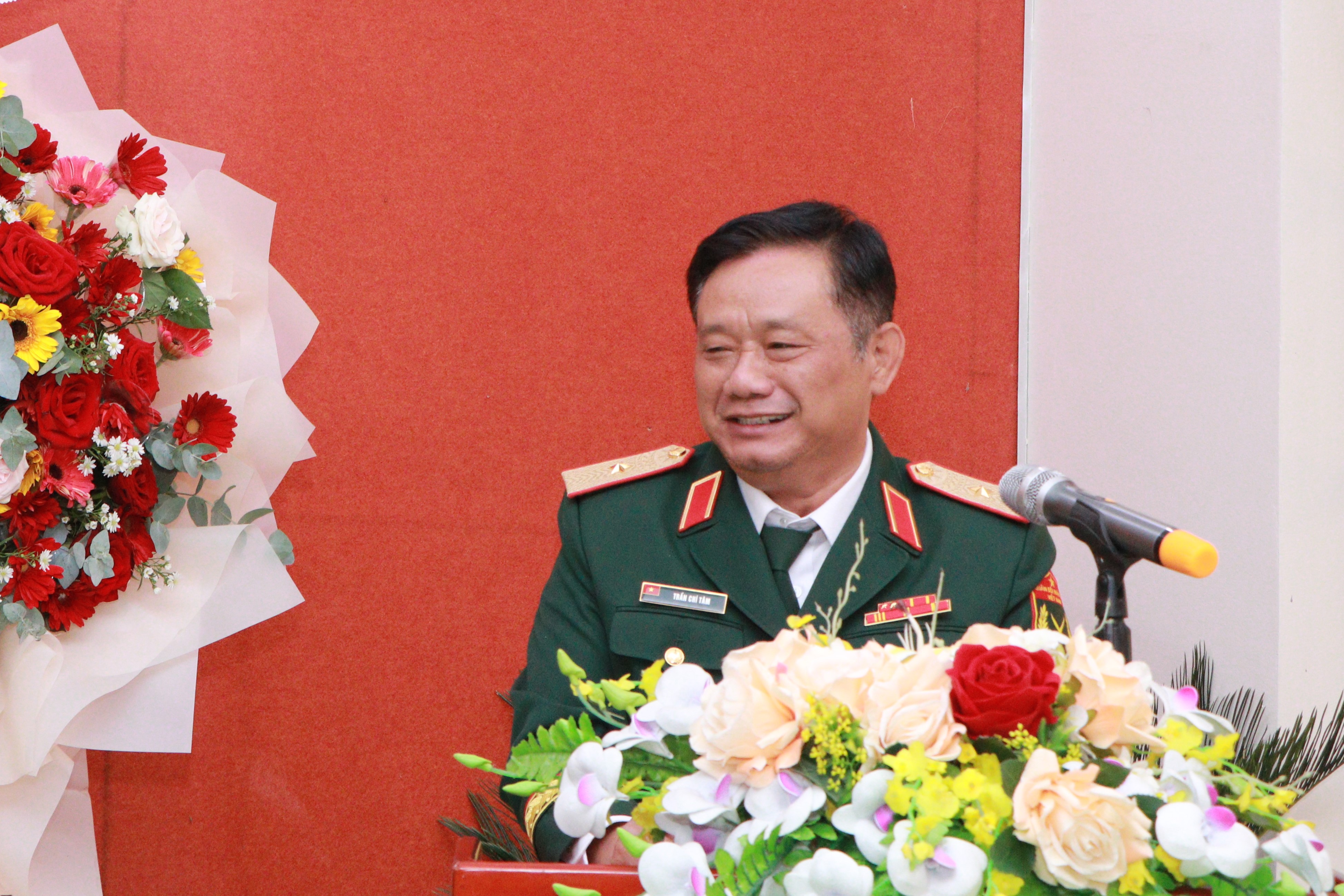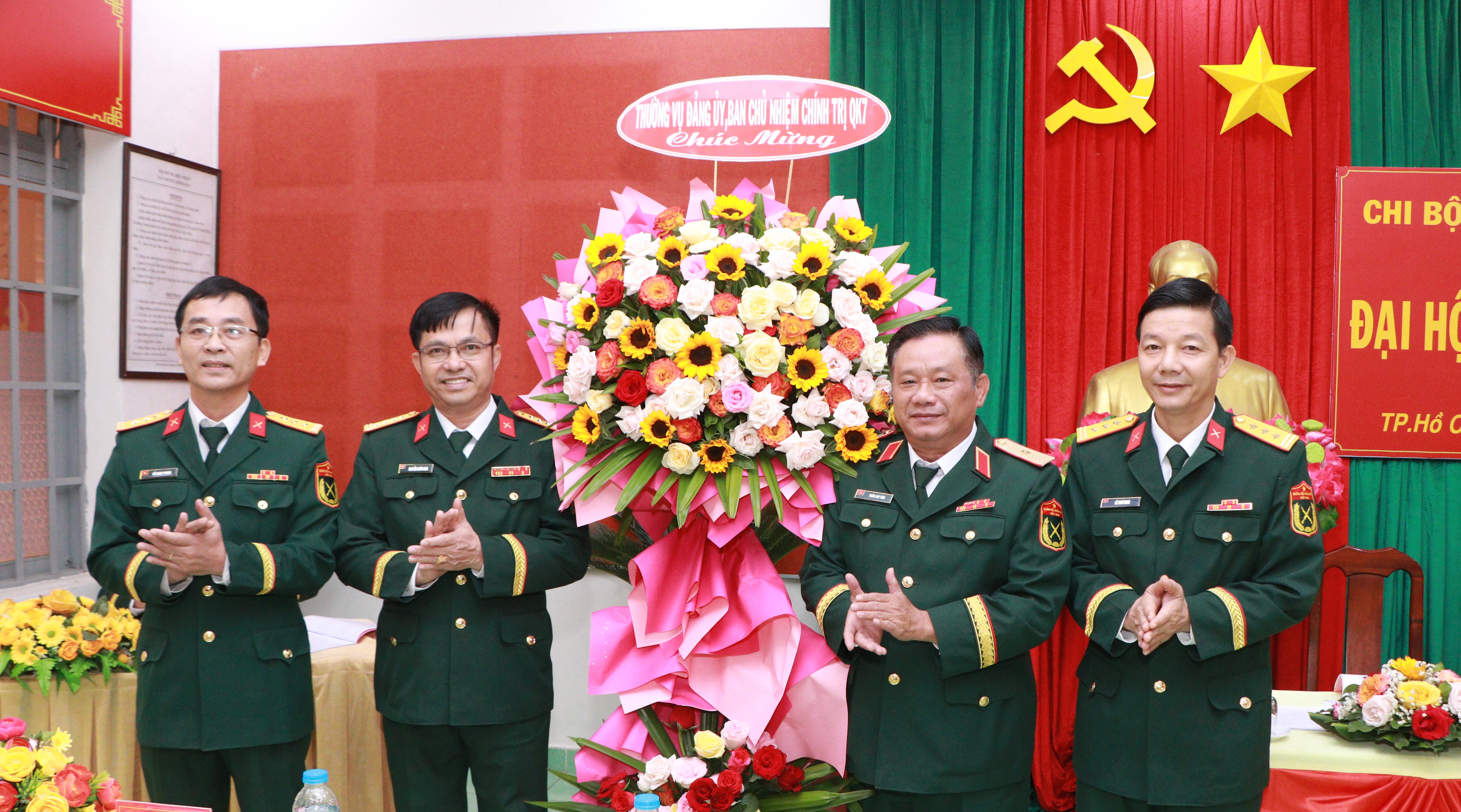 Thiếu tướng Trần Chí Tâm, Bí thư Đảng ủy Cục Chính trị, Phó Chủ nhiệm Chính trị Quân khu tặng hoa chúc mừng Đại hội.